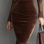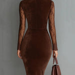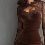 Lace Detailing: Elegant see-through lace sleeves and V-neck collar for a sophisticated look