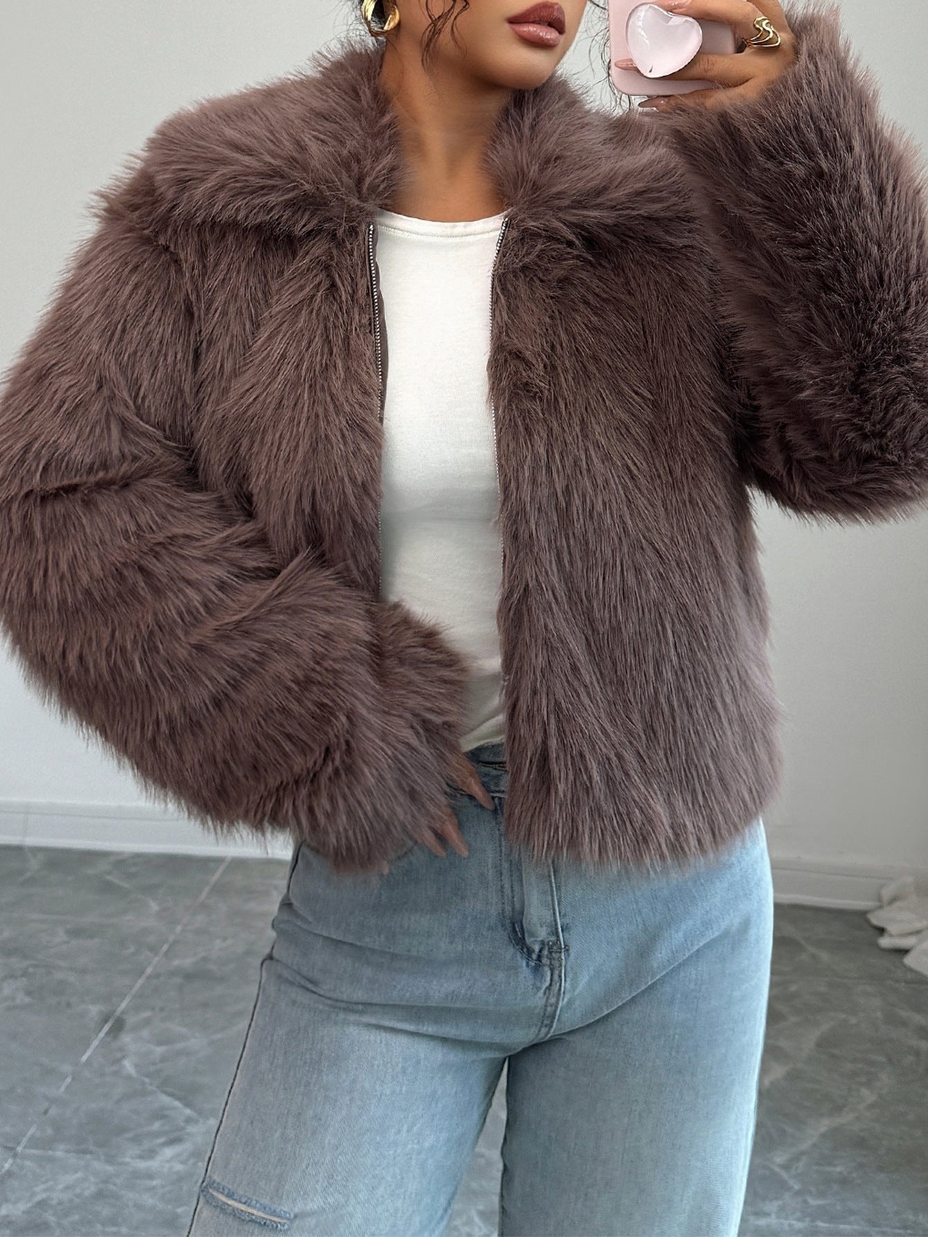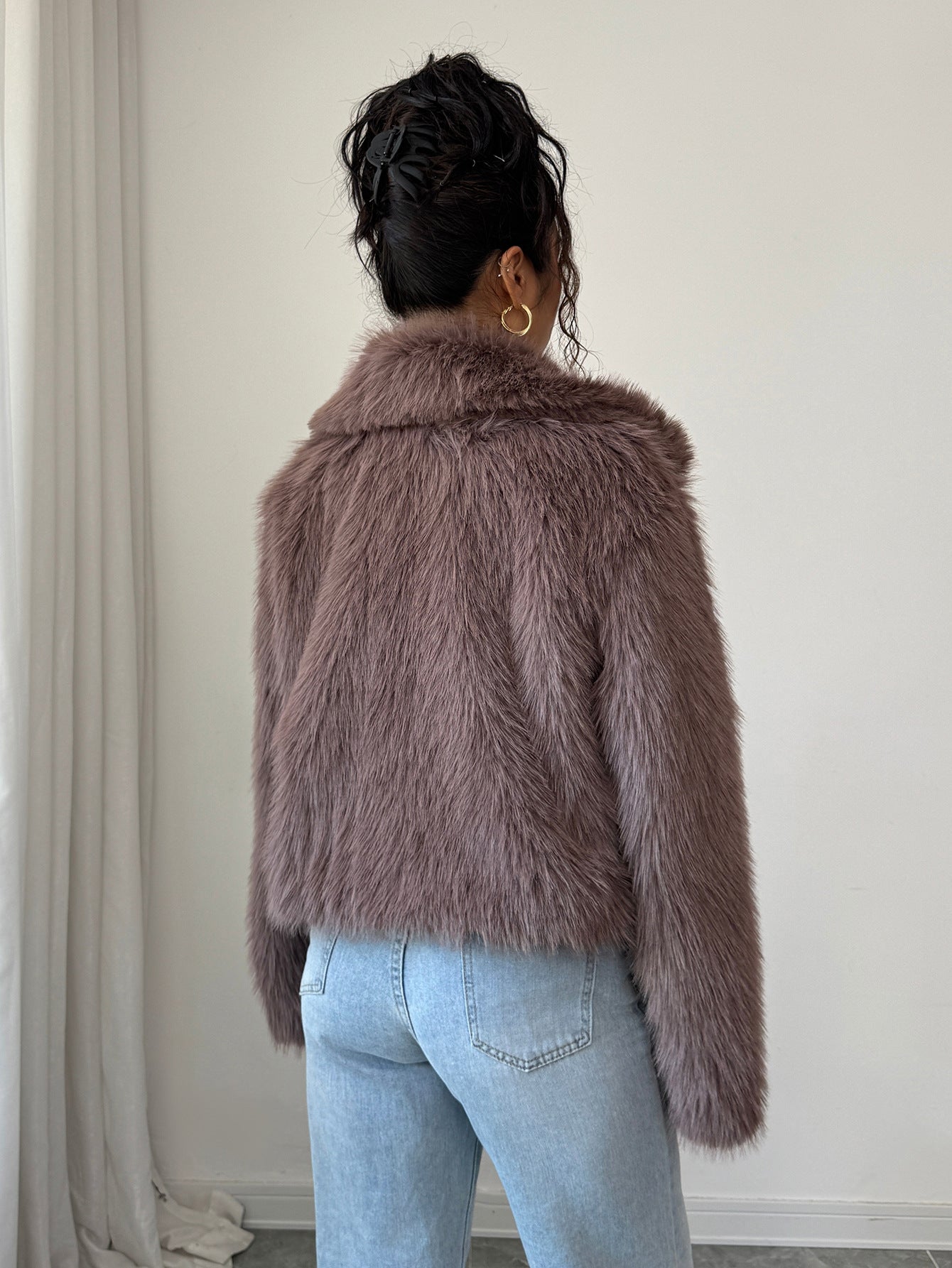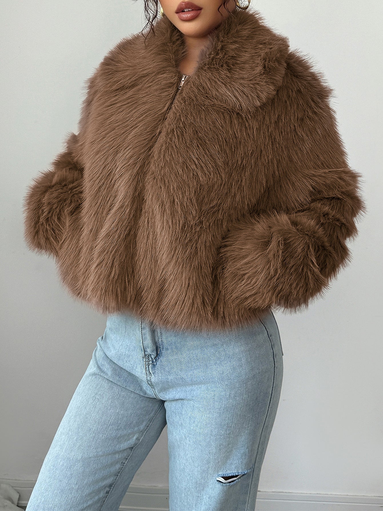 Elegant Design: Stylish plush coat with sophisticated European and American aesthetic