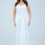• Fitted waist with draped front tie detail