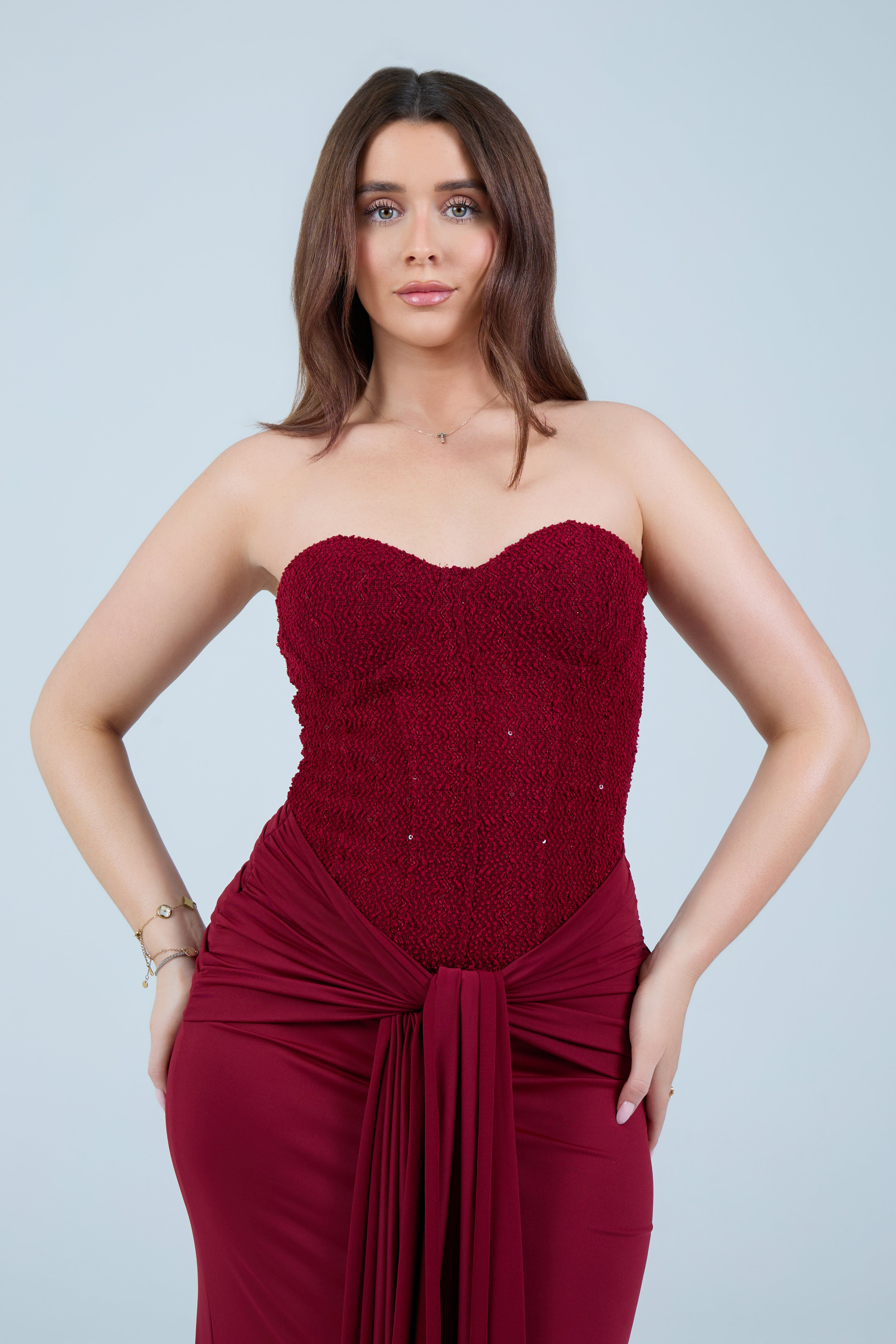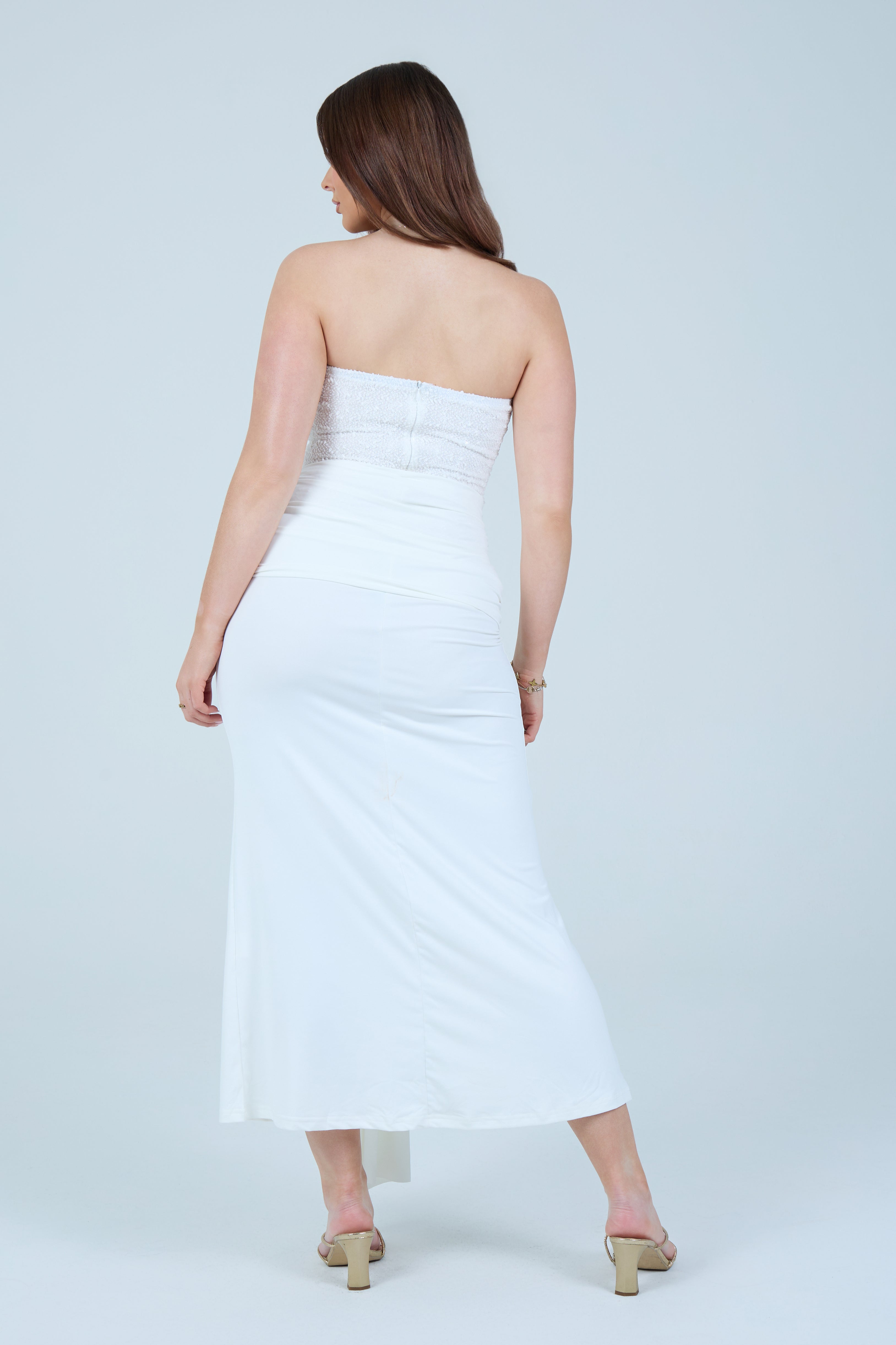 • Strapless corset-style bodice