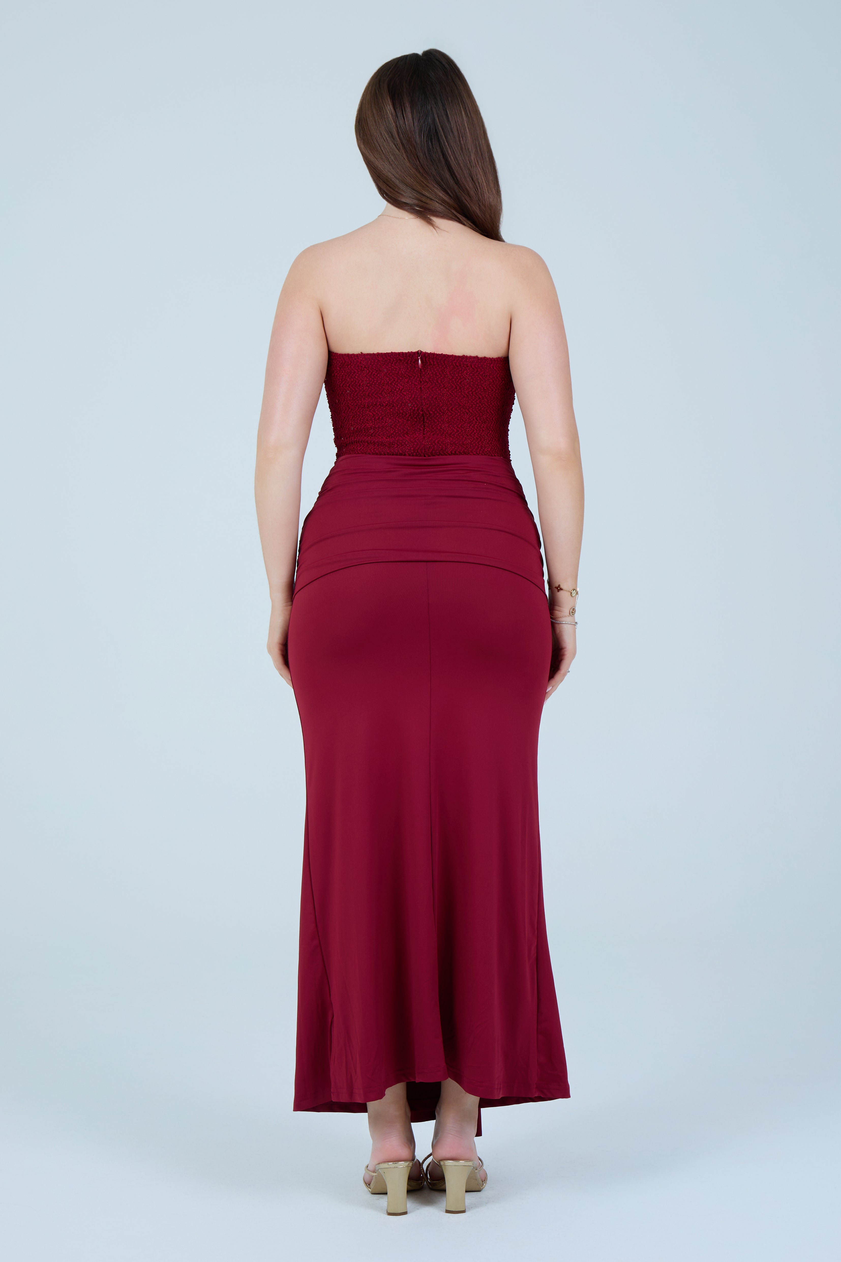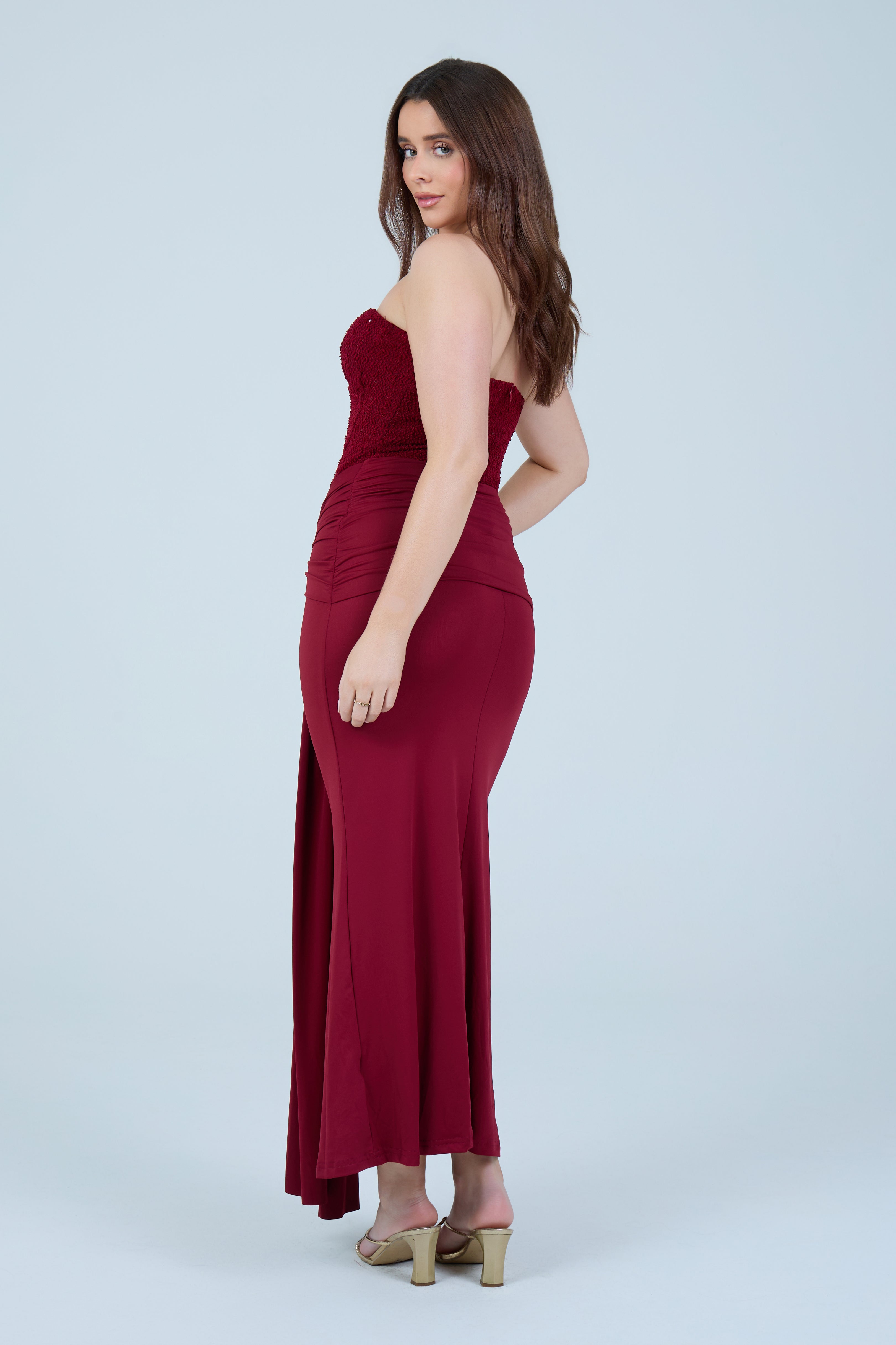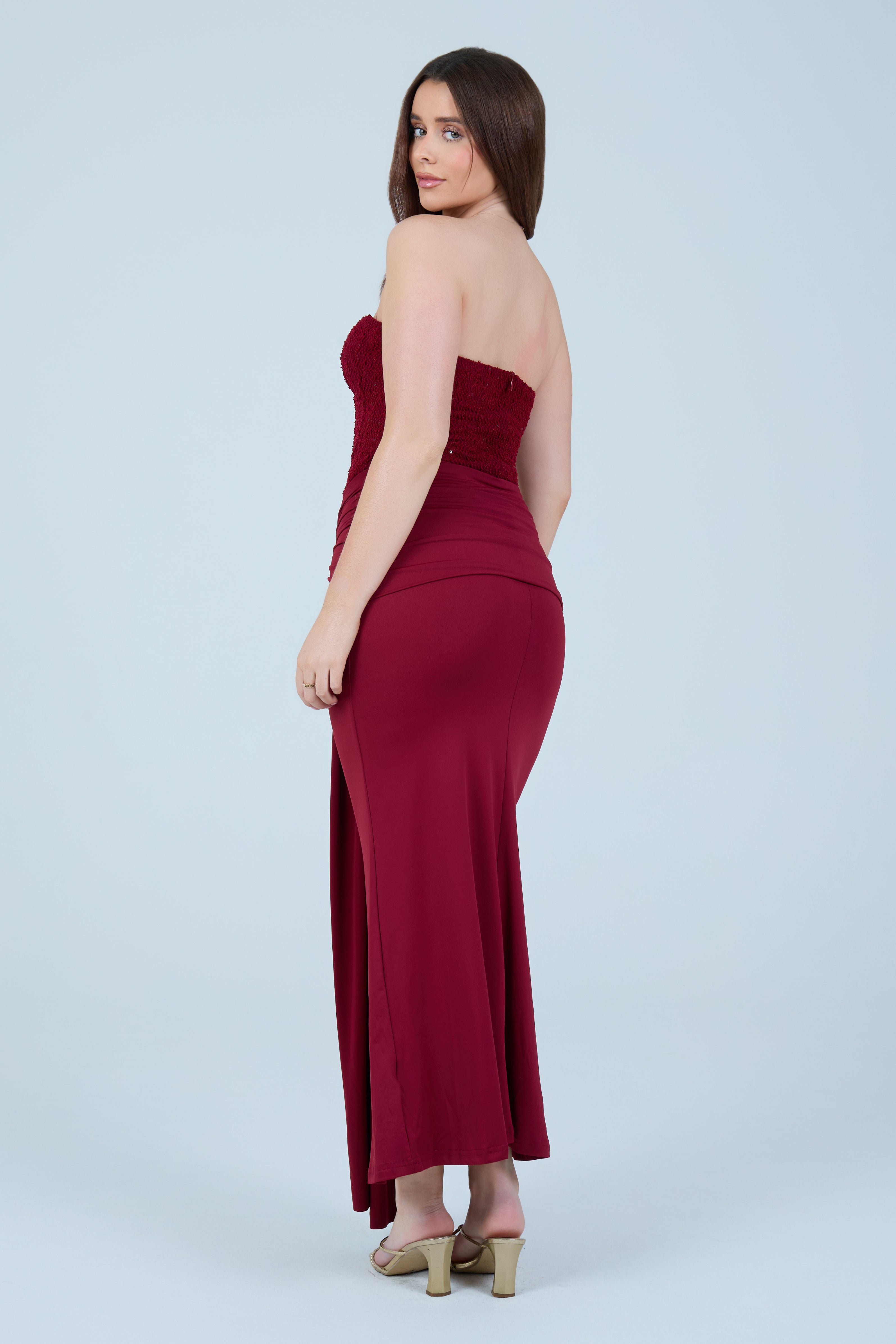 Designed to hug the body while remaining comfortable, this dress transitions seamlessly from formal occasions to elevated evening events. Pair with statement heels and minimal accessories for a timeless, sophisticated look.
