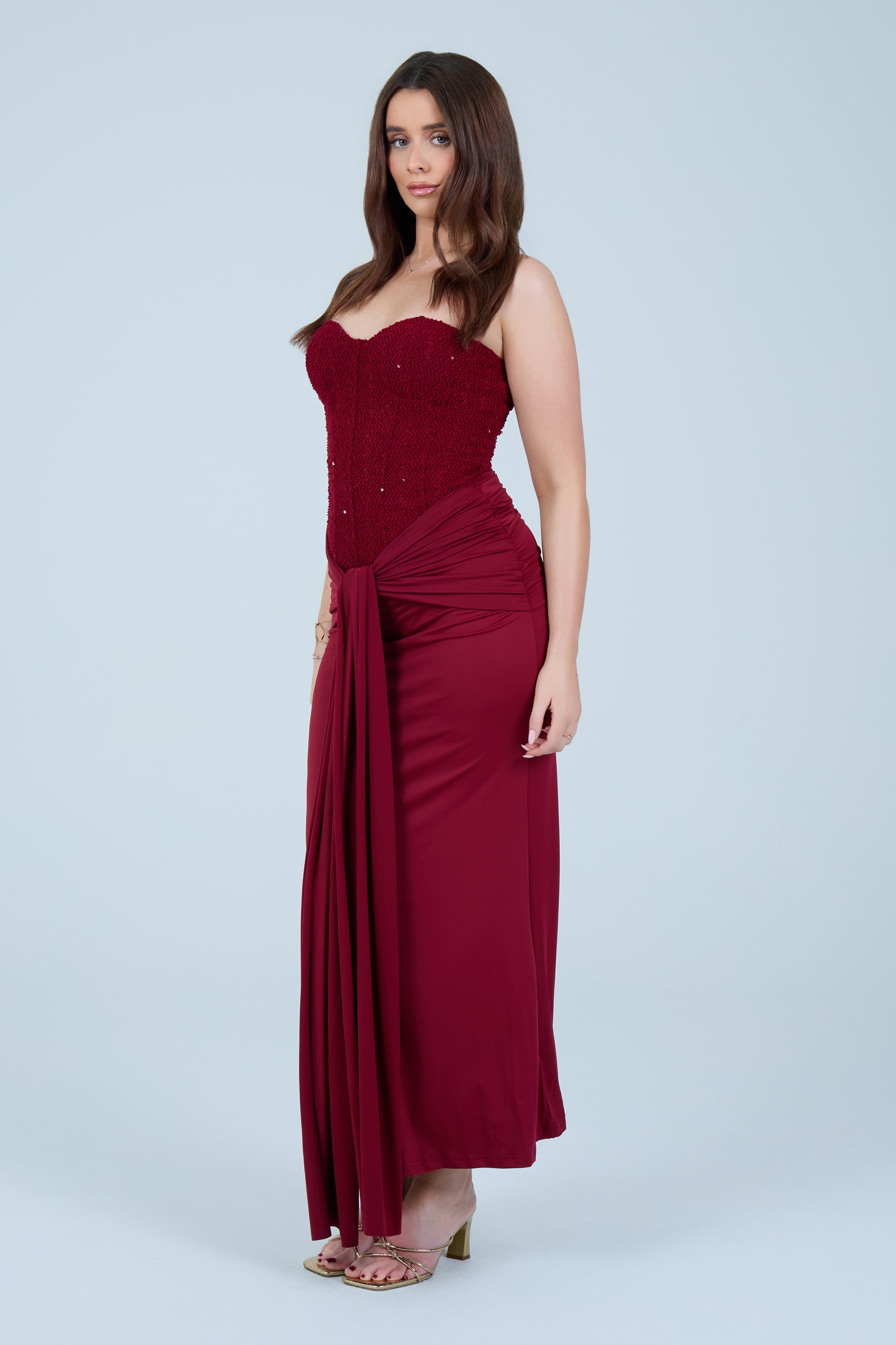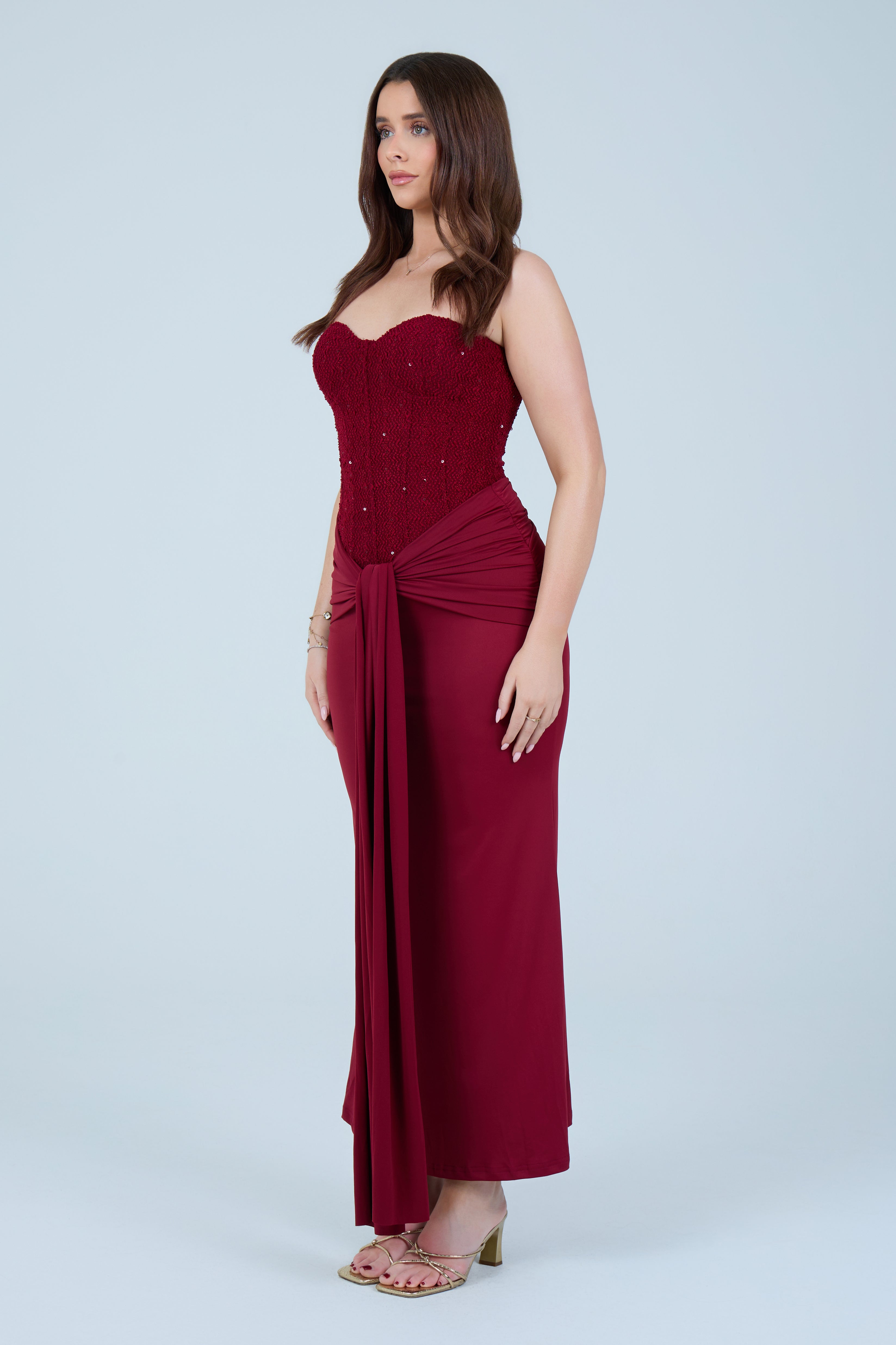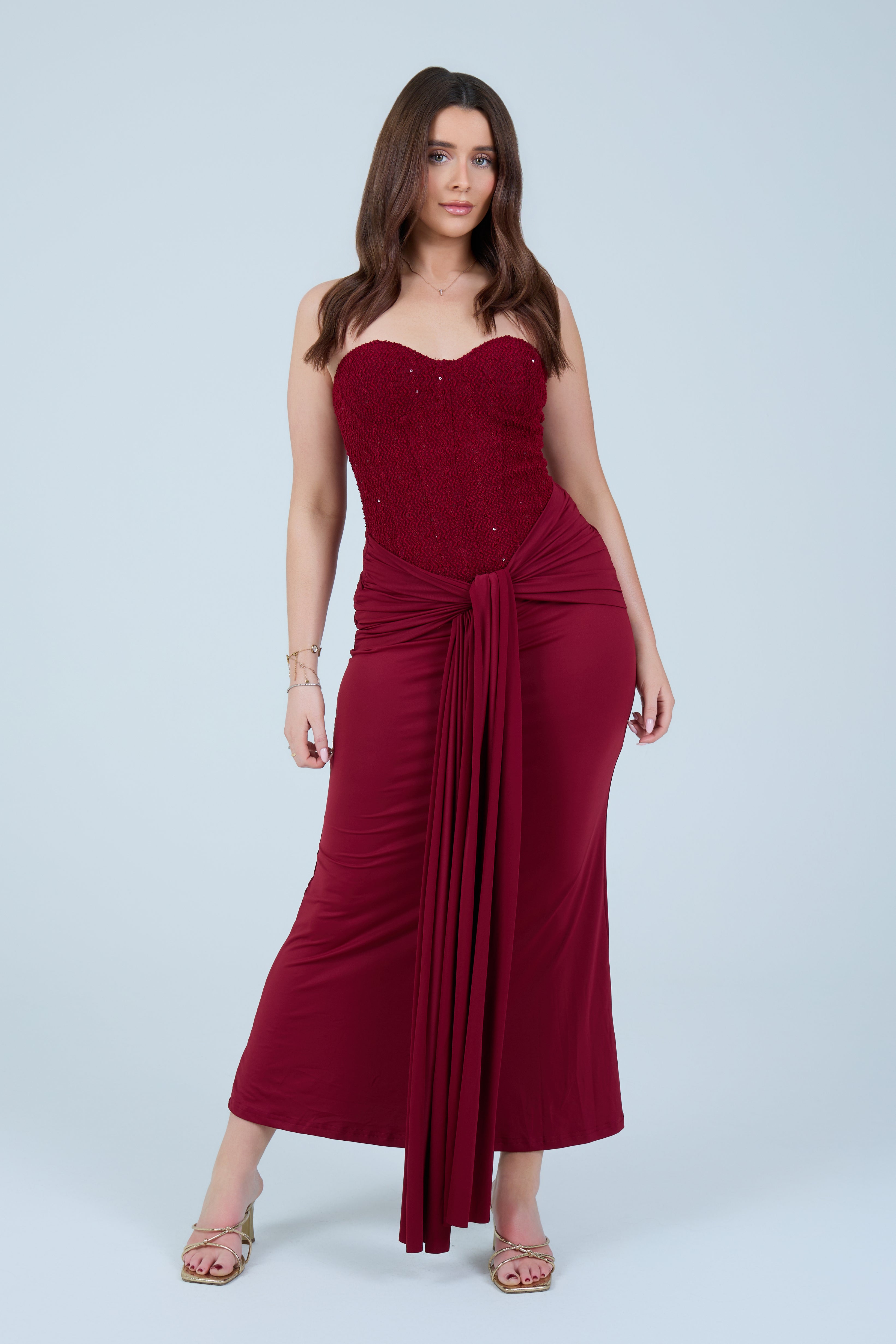 Designed to hug the body while remaining comfortable, this dress transitions seamlessly from formal occasions to elevated evening events. Pair with statement heels and minimal accessories for a timeless, sophisticated look.