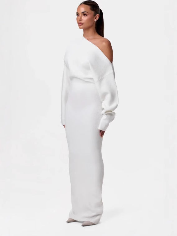 Off-Shoulder Long Sleeve Ruched Bodycon Maxi Dress