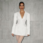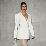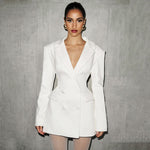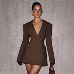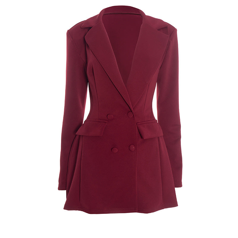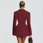 Versatile Style: Combines a blazer-inspired silhouette with a flared skirt, suitable for both office and casual occasions.