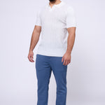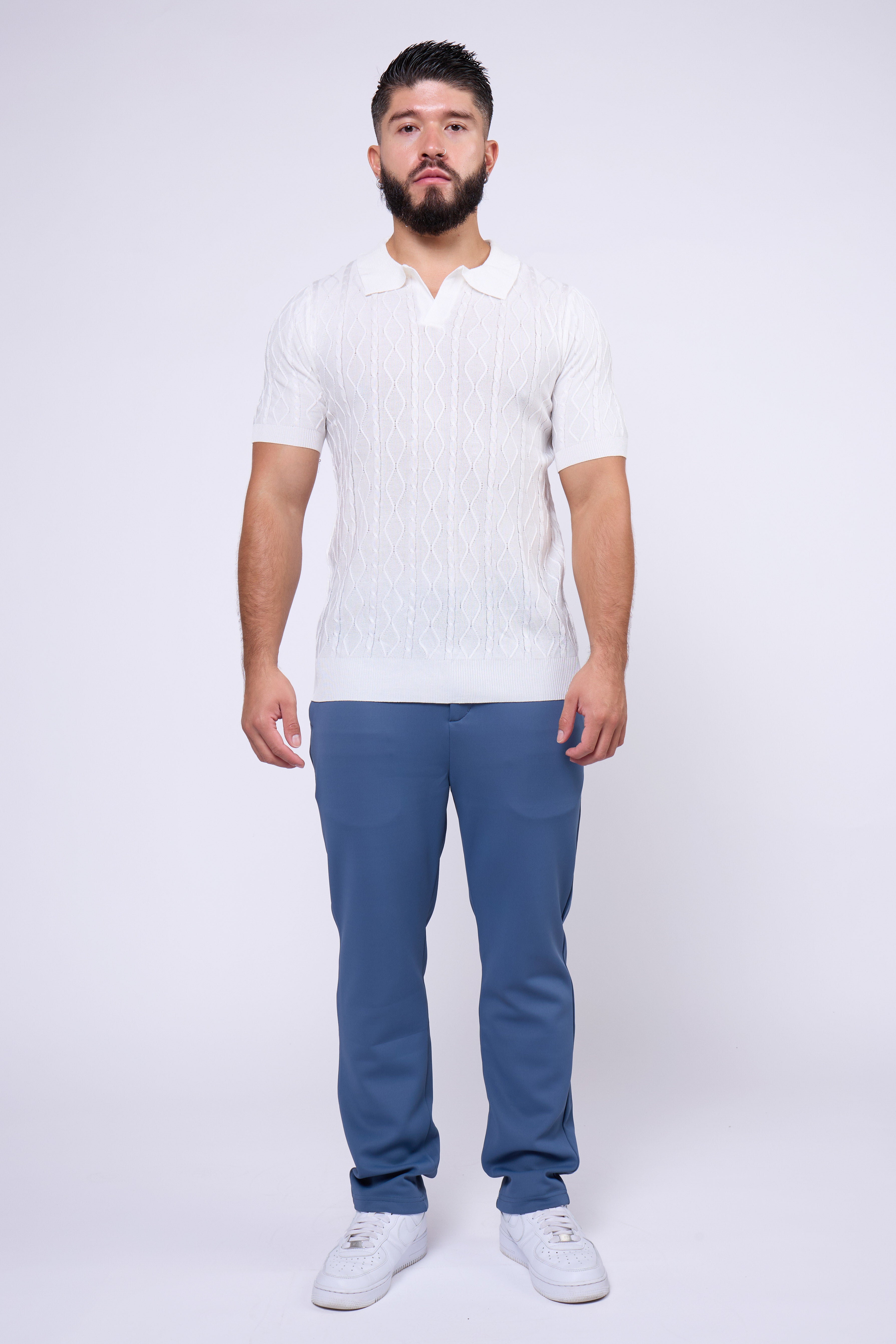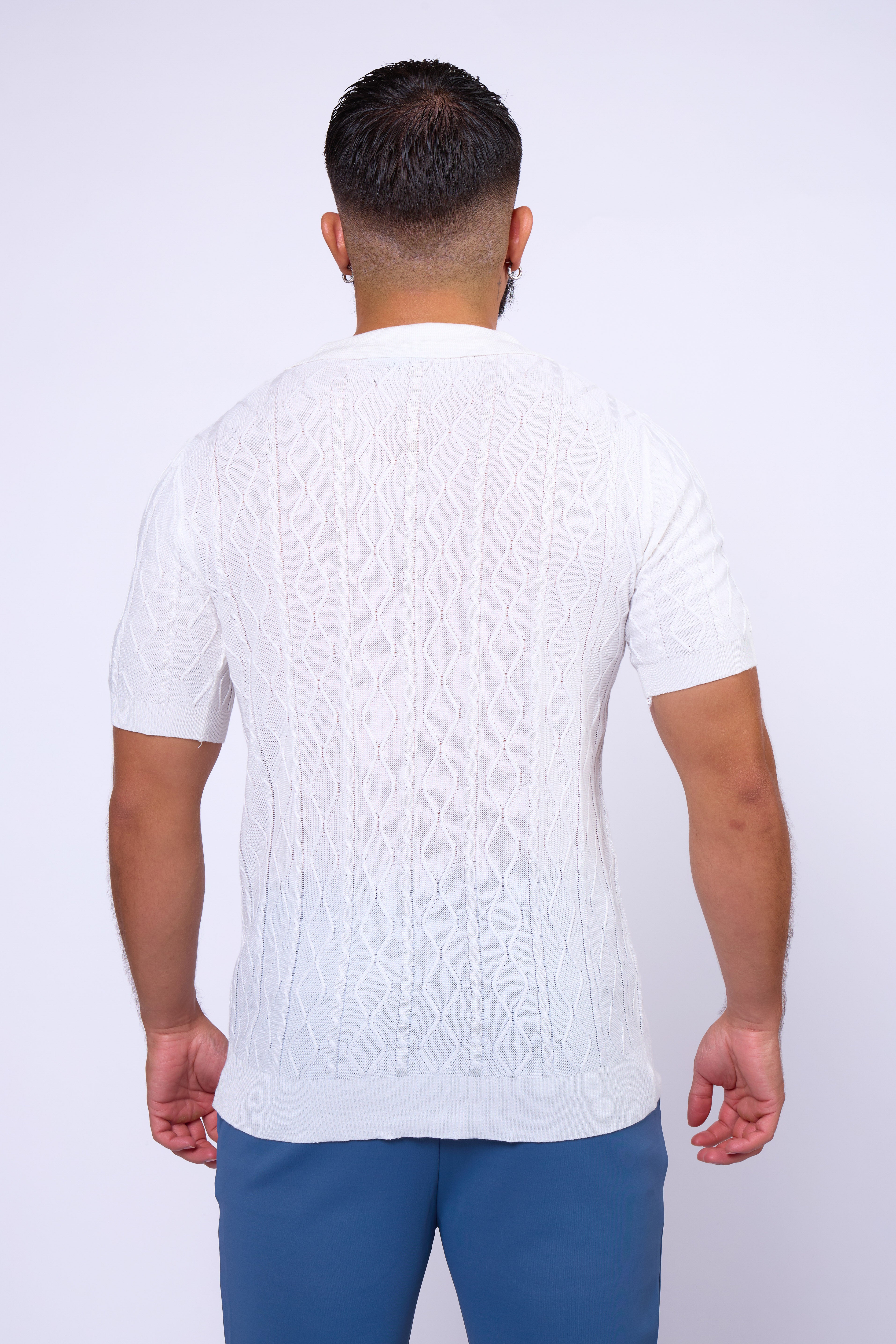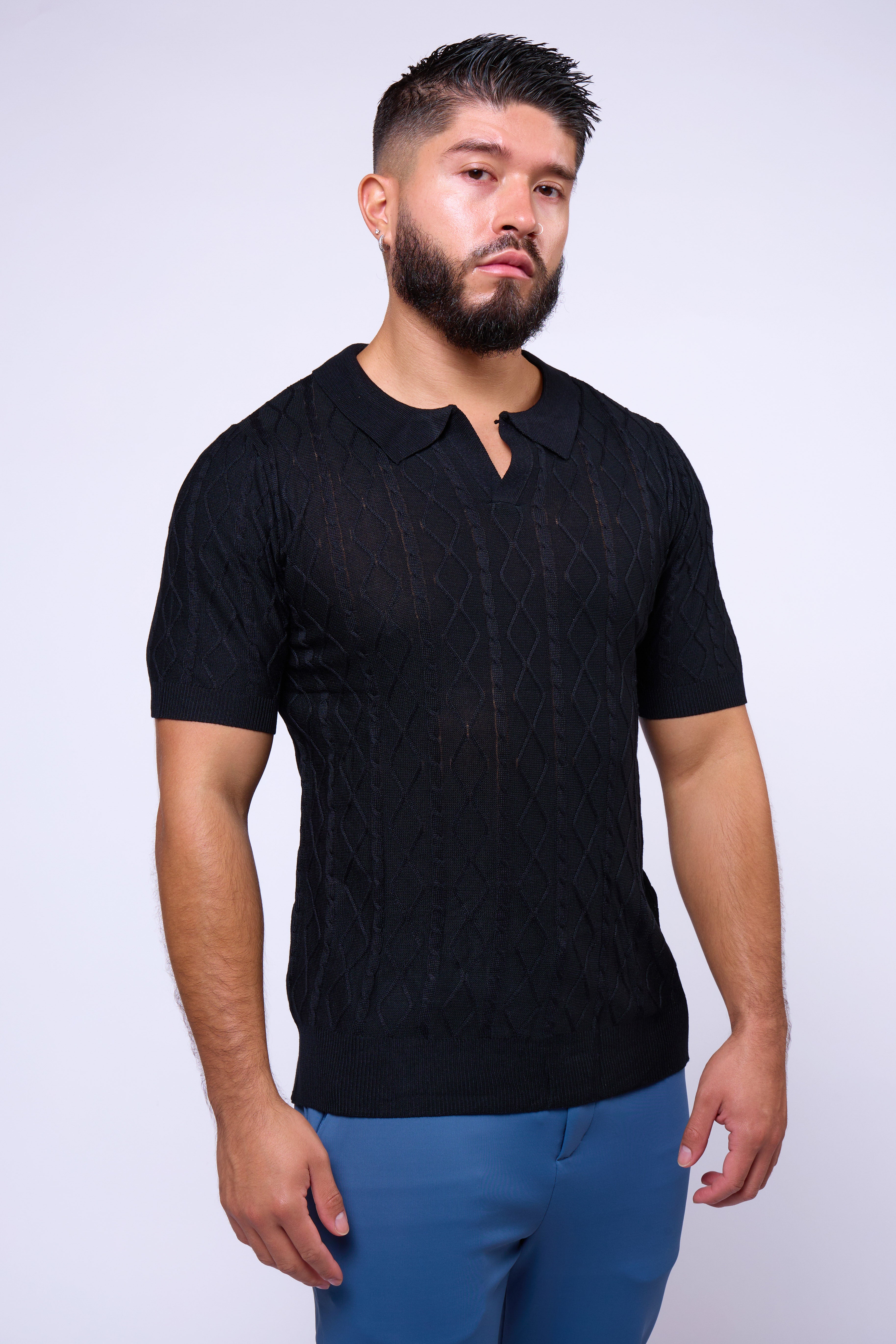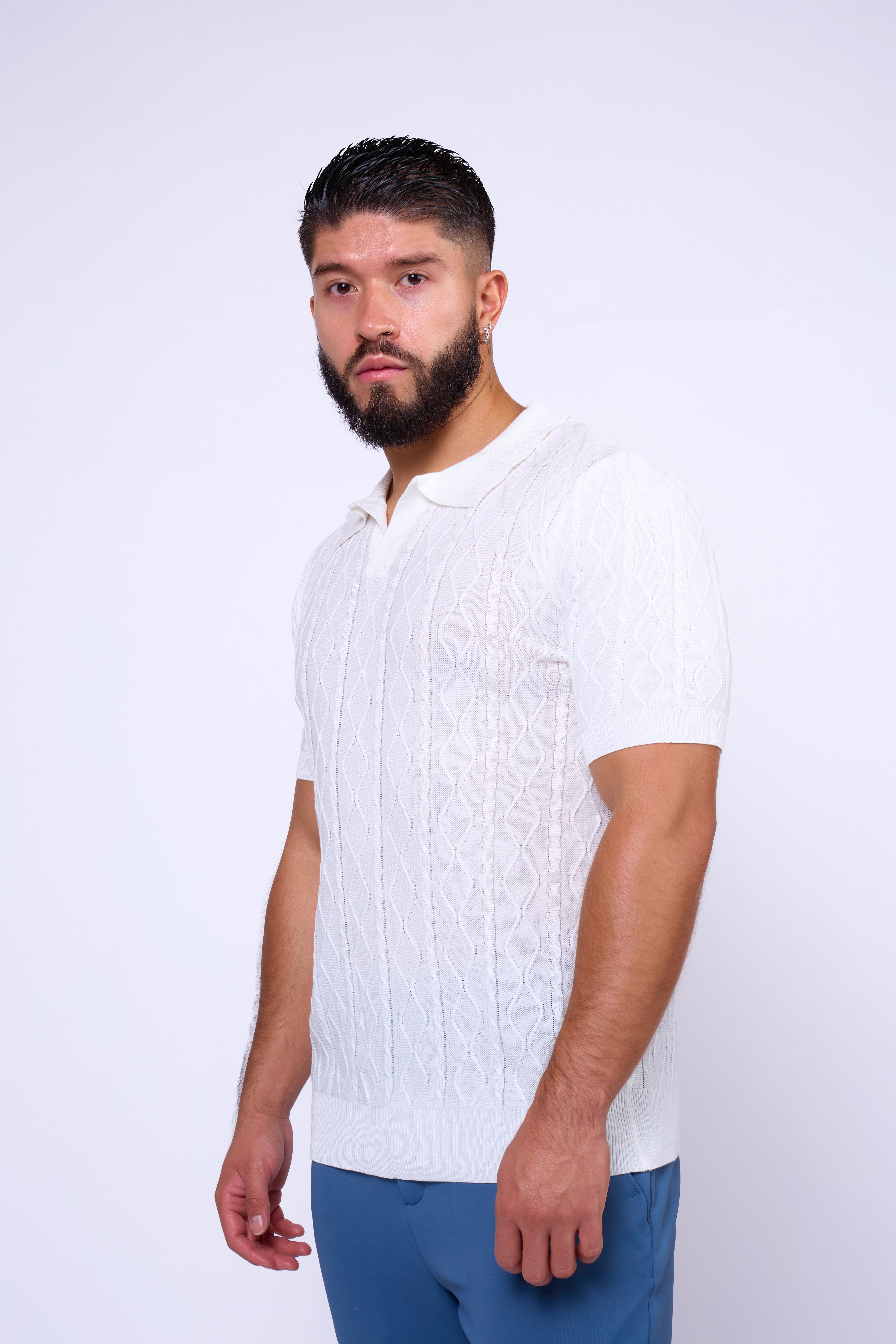 Featuring an open collar neckline and a distinct textured knit pattern, the Élysée Knit Polo brings subtle detail to your smart-casual wardrobe. Perfect for warm days, summer evenings, or elevated layering, it transitions seamlessly between refined and relaxed.