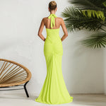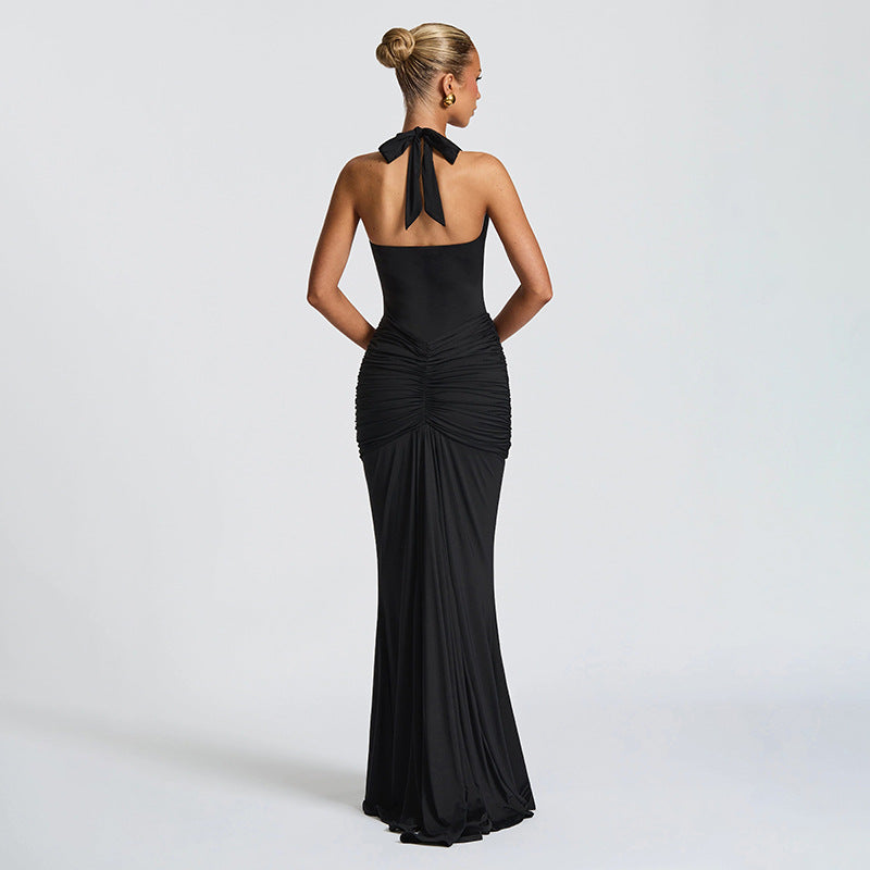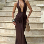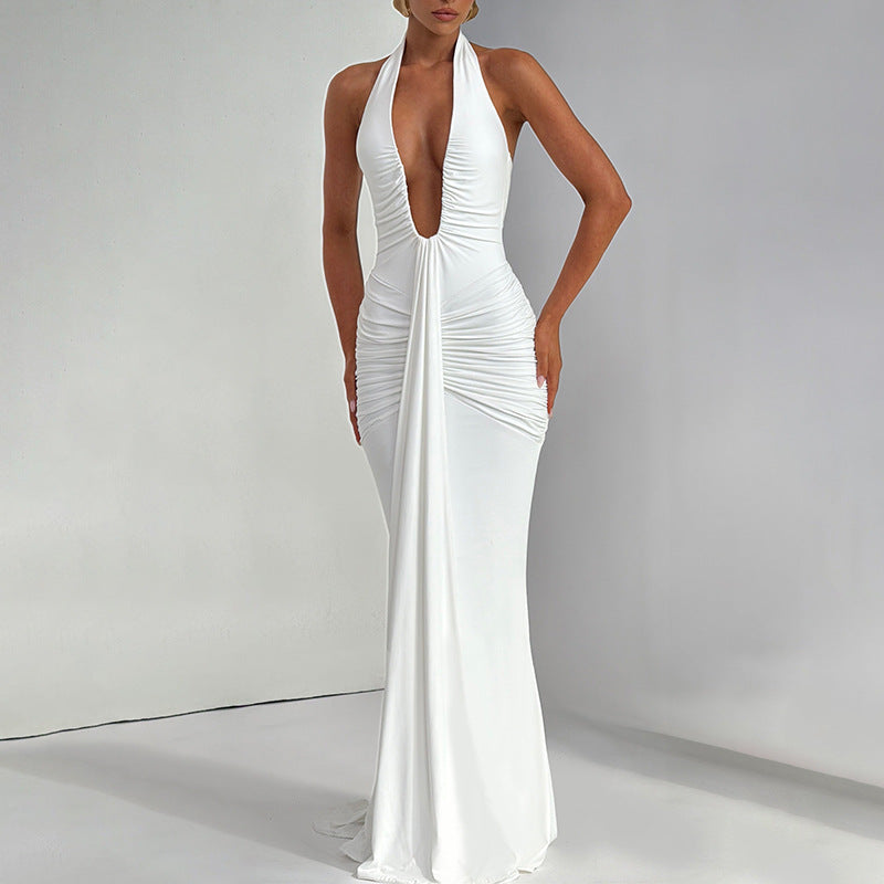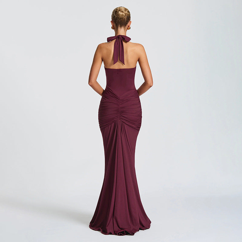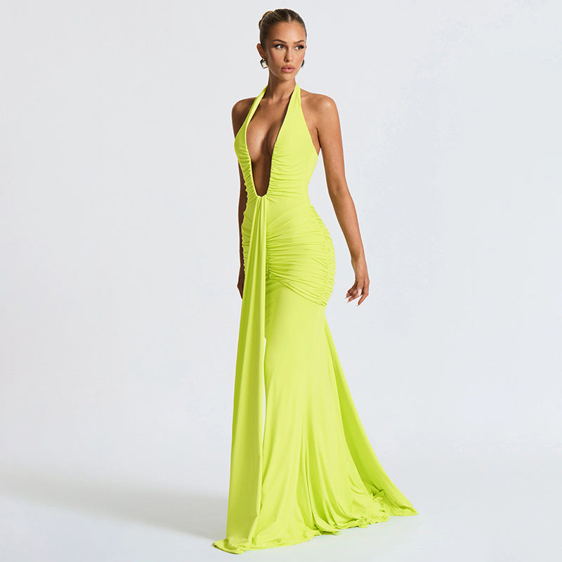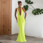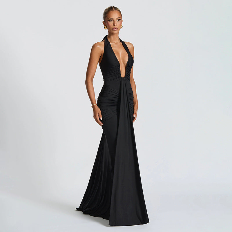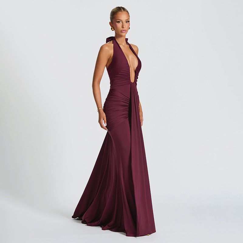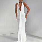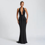 Elegant Design: Features a halter neckline and V-neck for a sophisticated, elegant look.
