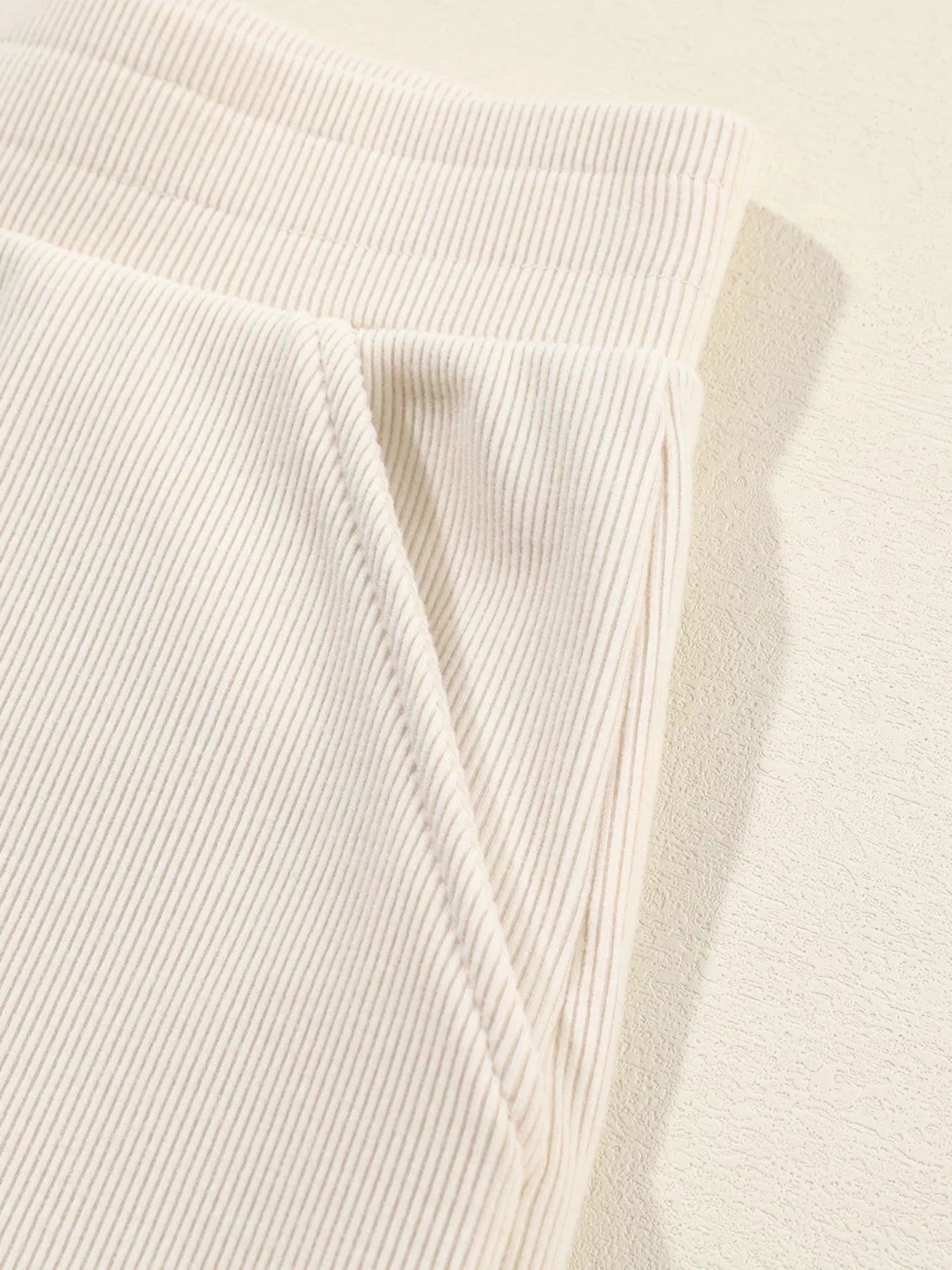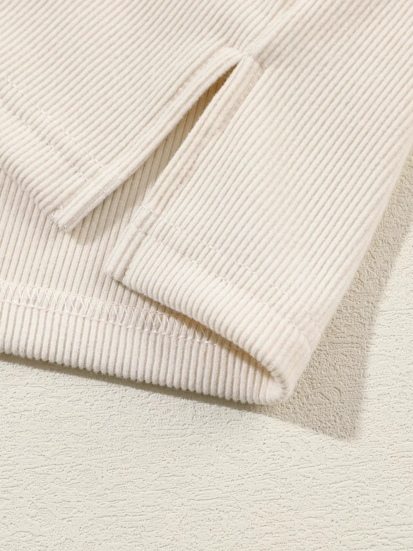 Collared Split Neck Ribbed 2pcs Outfit Set