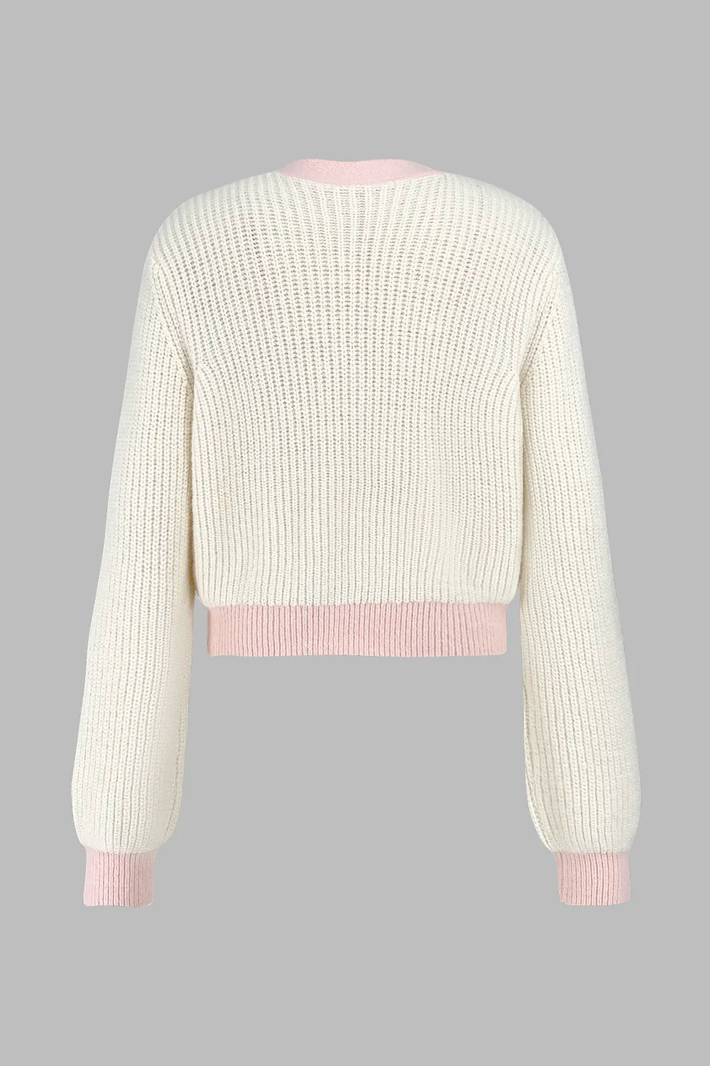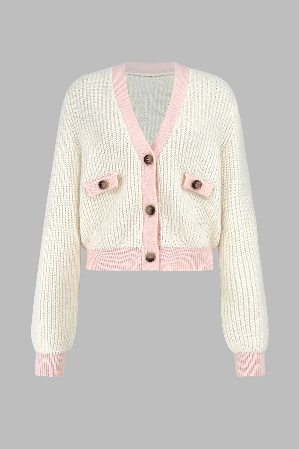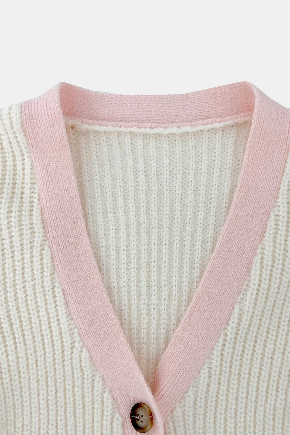 Contrast Trim Button Up Dropped Shoulder Cardigan