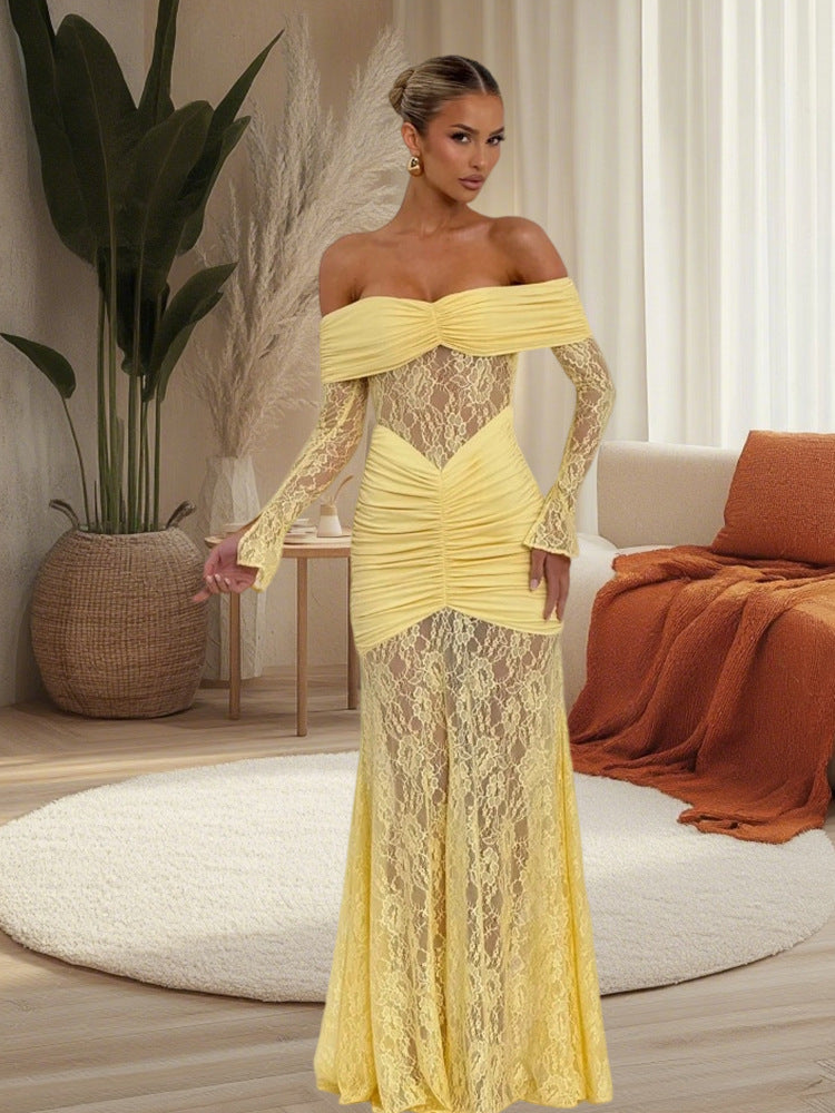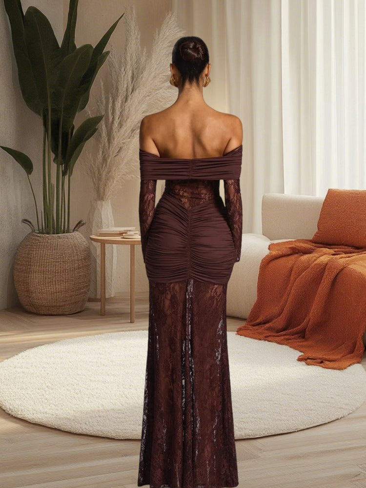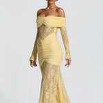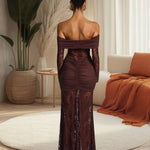 Elegant Design: Features a fishtail hem and off-shoulder neckline for a stylish and sophisticated look.
