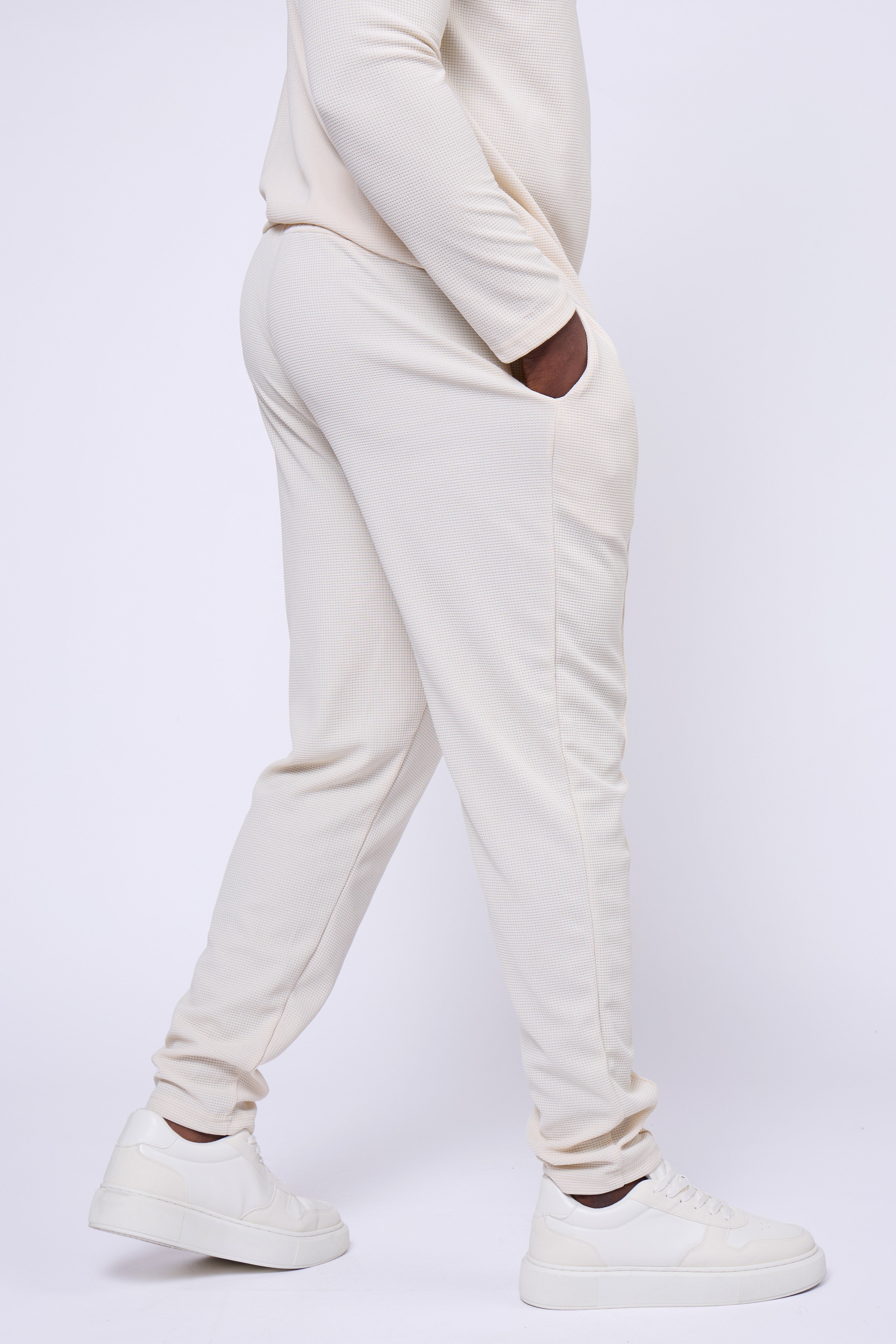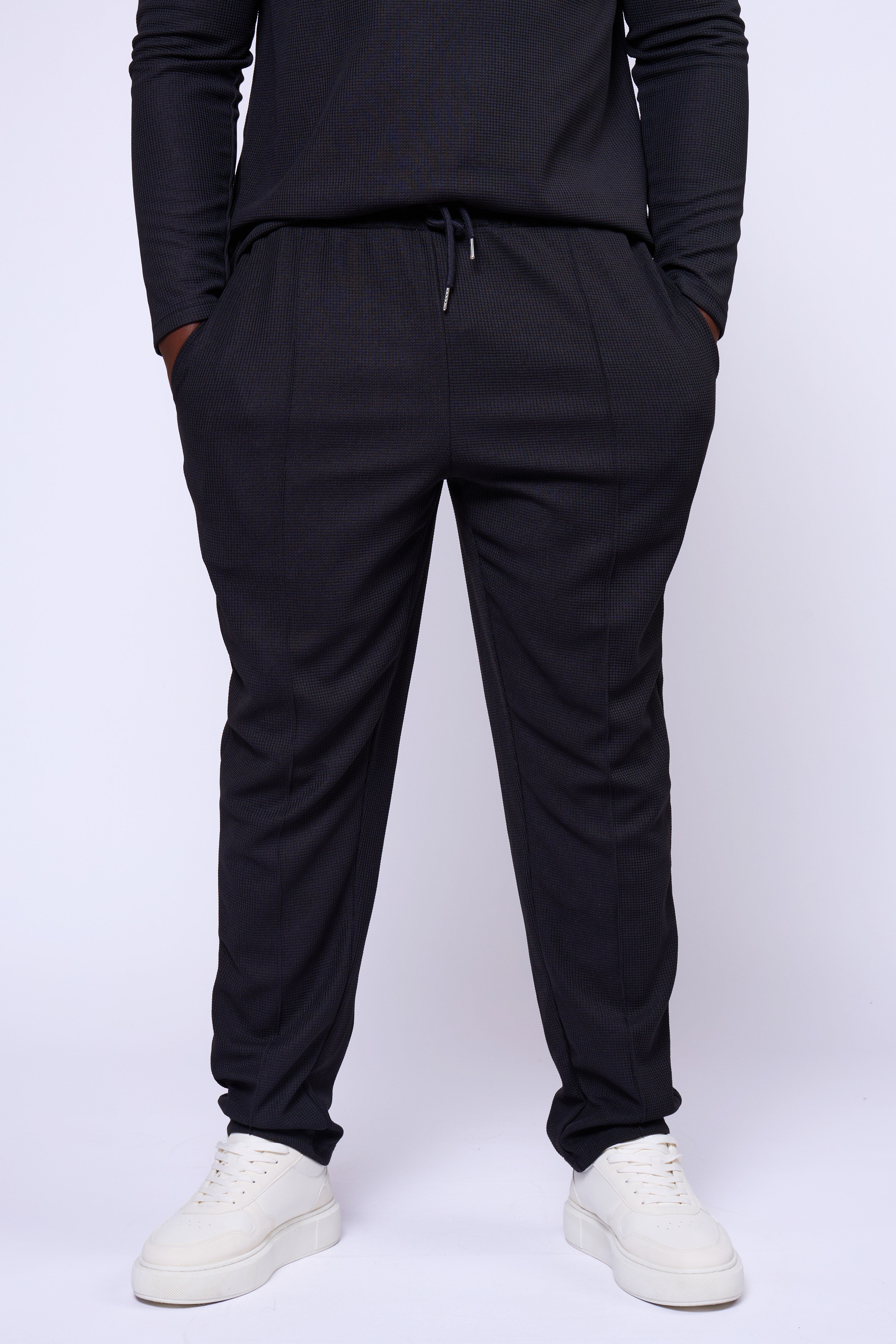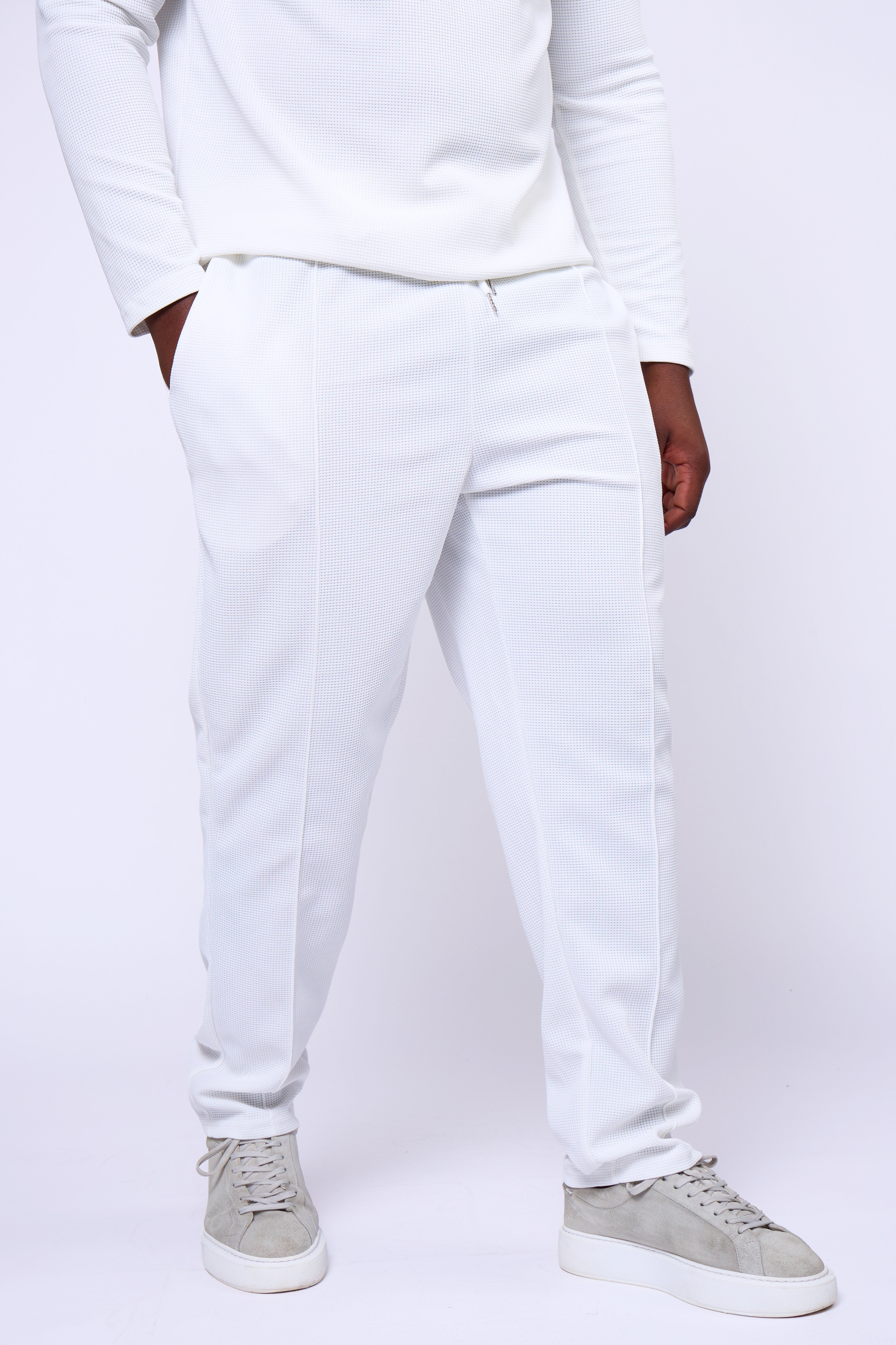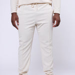 The matching trousers offer a refined taper with subtle front seam detailing for a structured appearance. Complete with an adjustable drawstring waist, they strike the perfect balance between smart and relaxed styling.