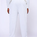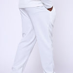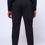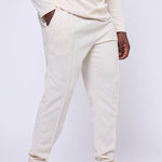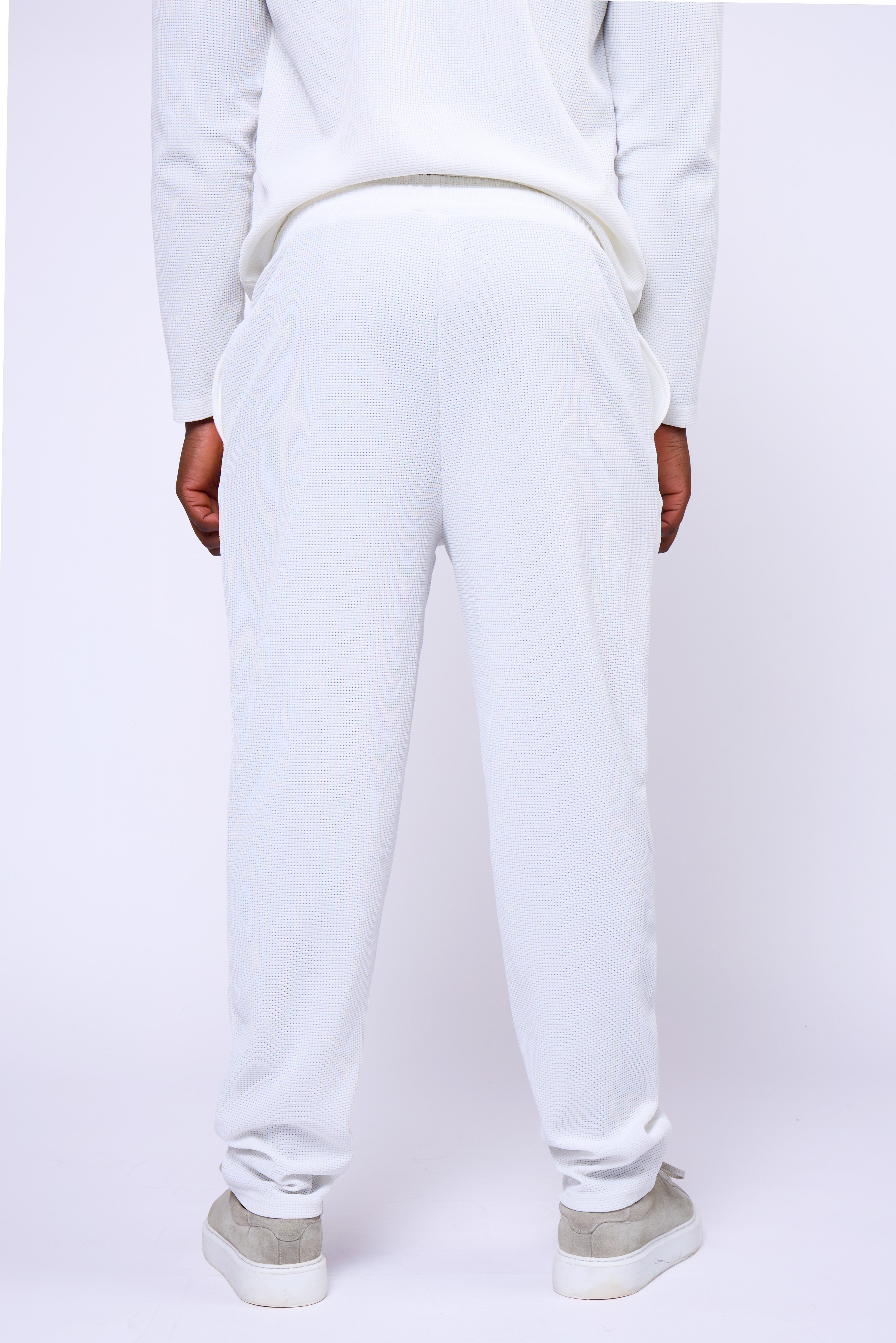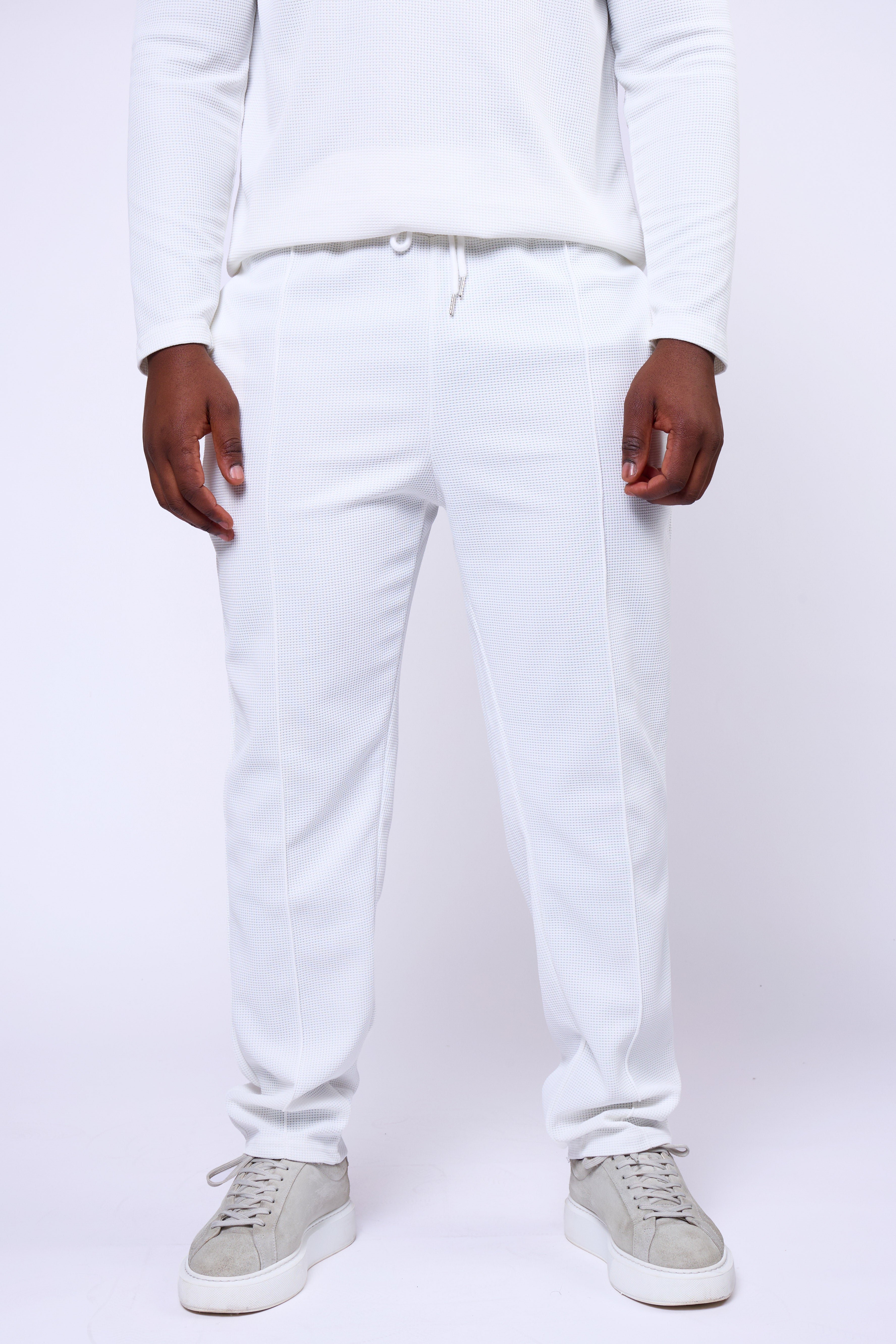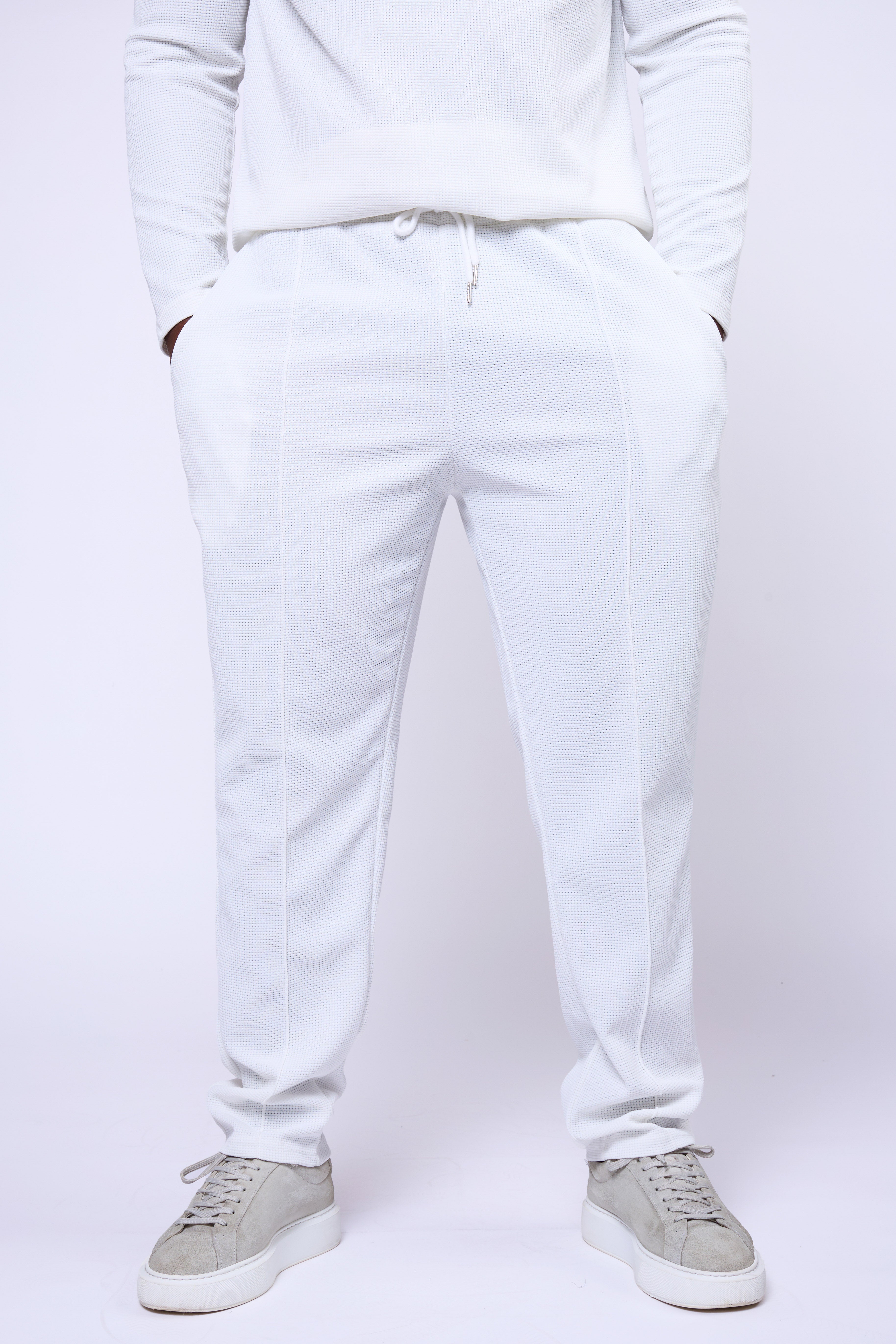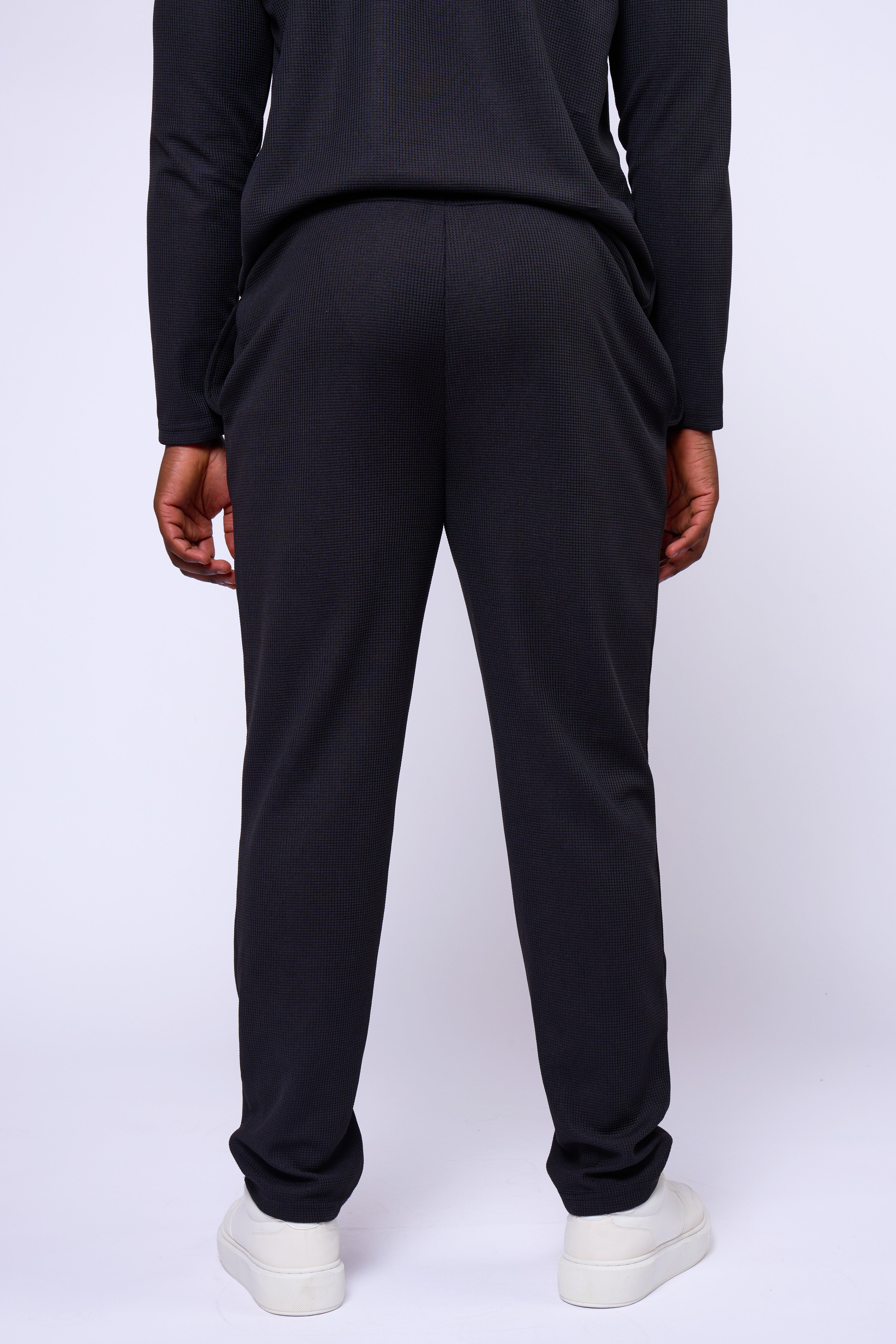 The matching trousers offer a refined taper with subtle front seam detailing for a structured appearance. Complete with an adjustable drawstring waist, they strike the perfect balance between smart and relaxed styling.