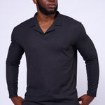 The top features an open-collar neckline for a contemporary edge and a tailored slim fit that flatters the physique while maintaining comfort. Its minimal design and smooth drape make it ideal for layering or wearing solo for a clean, confident look.