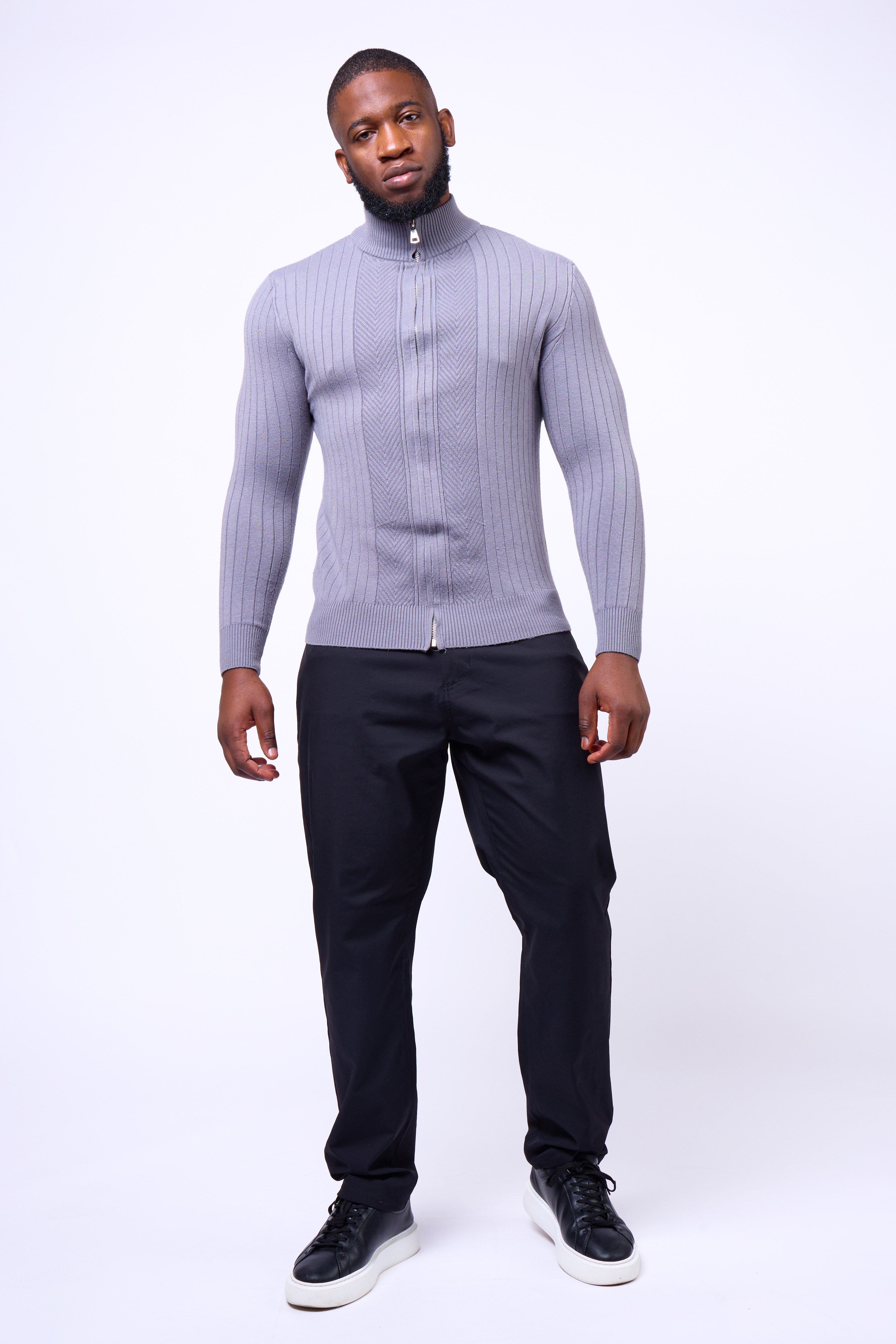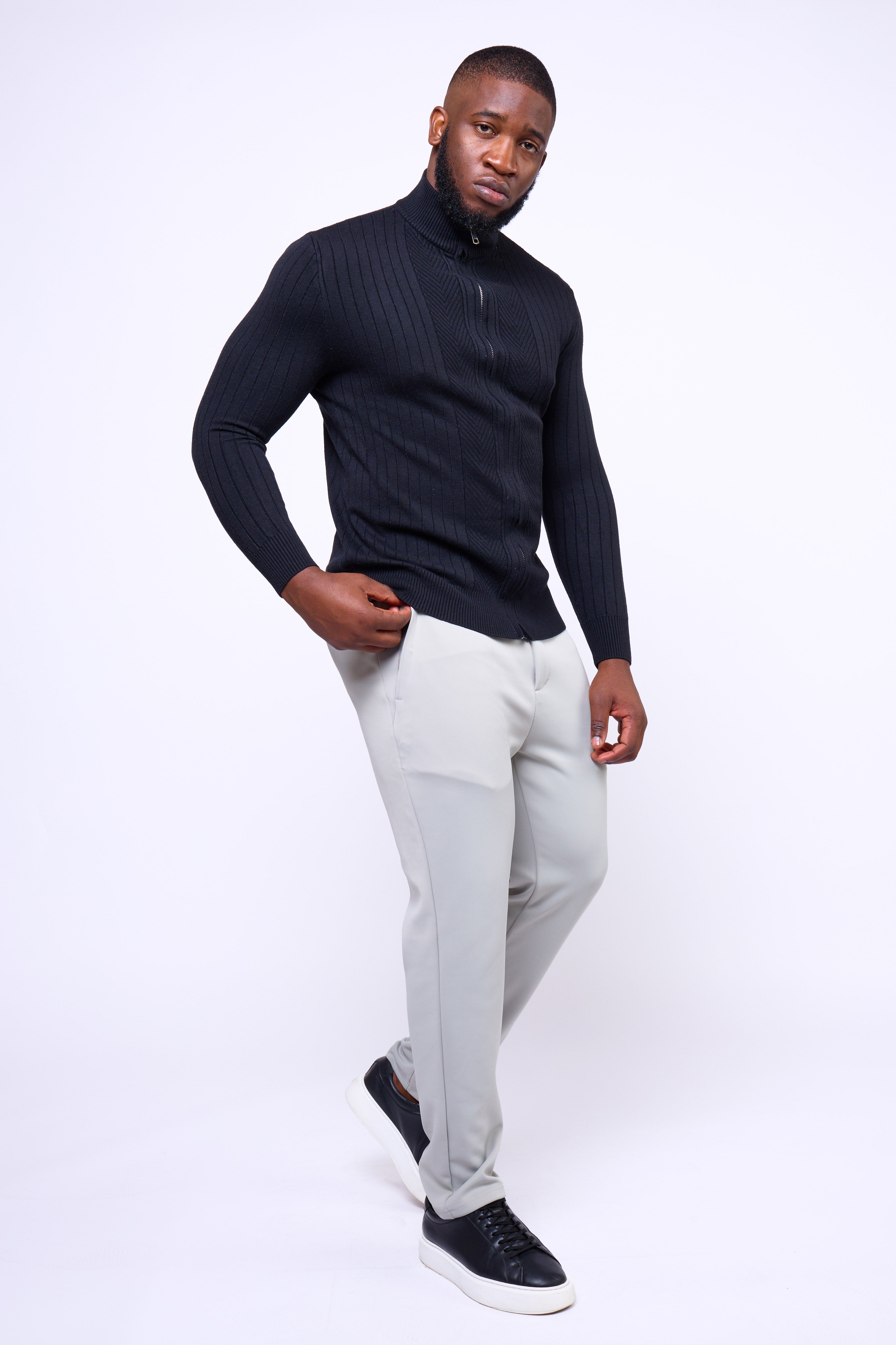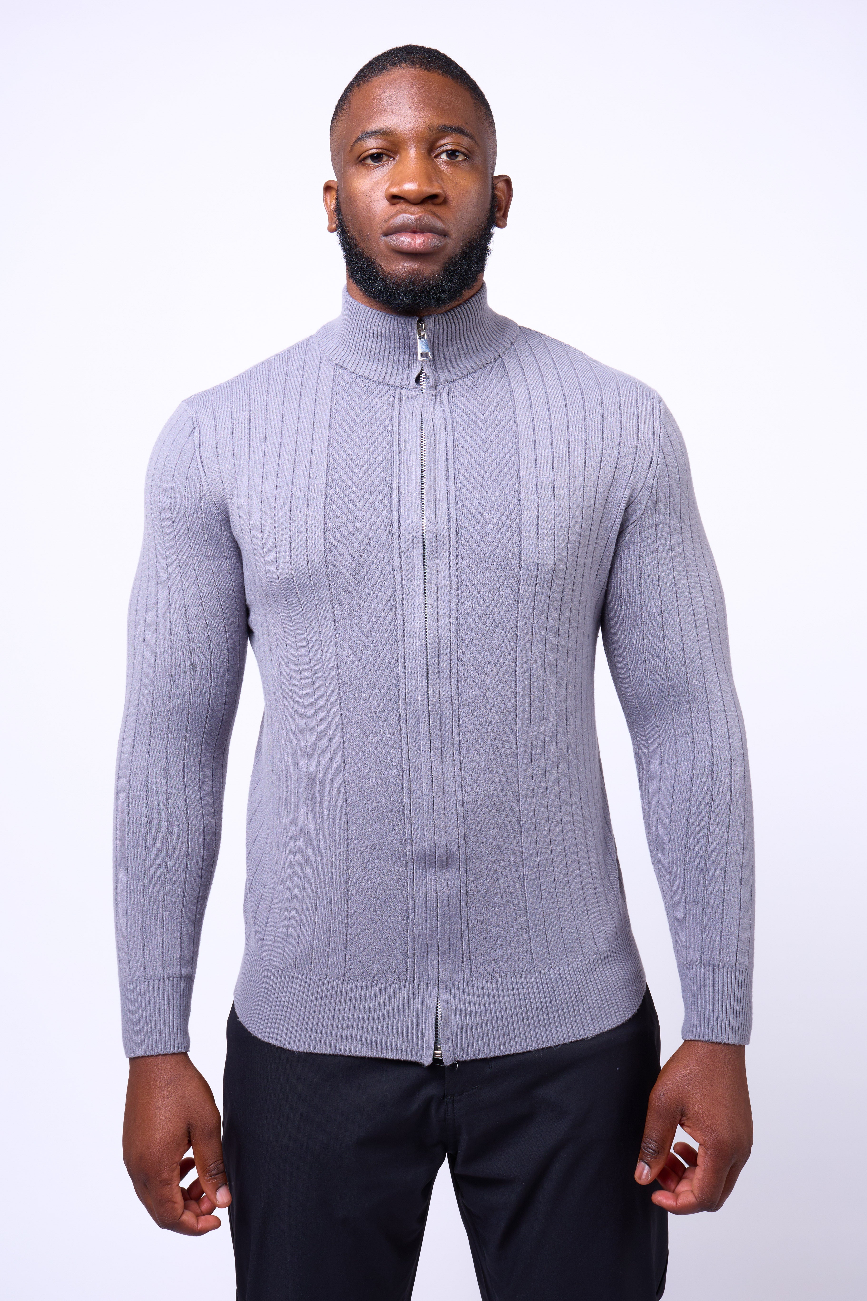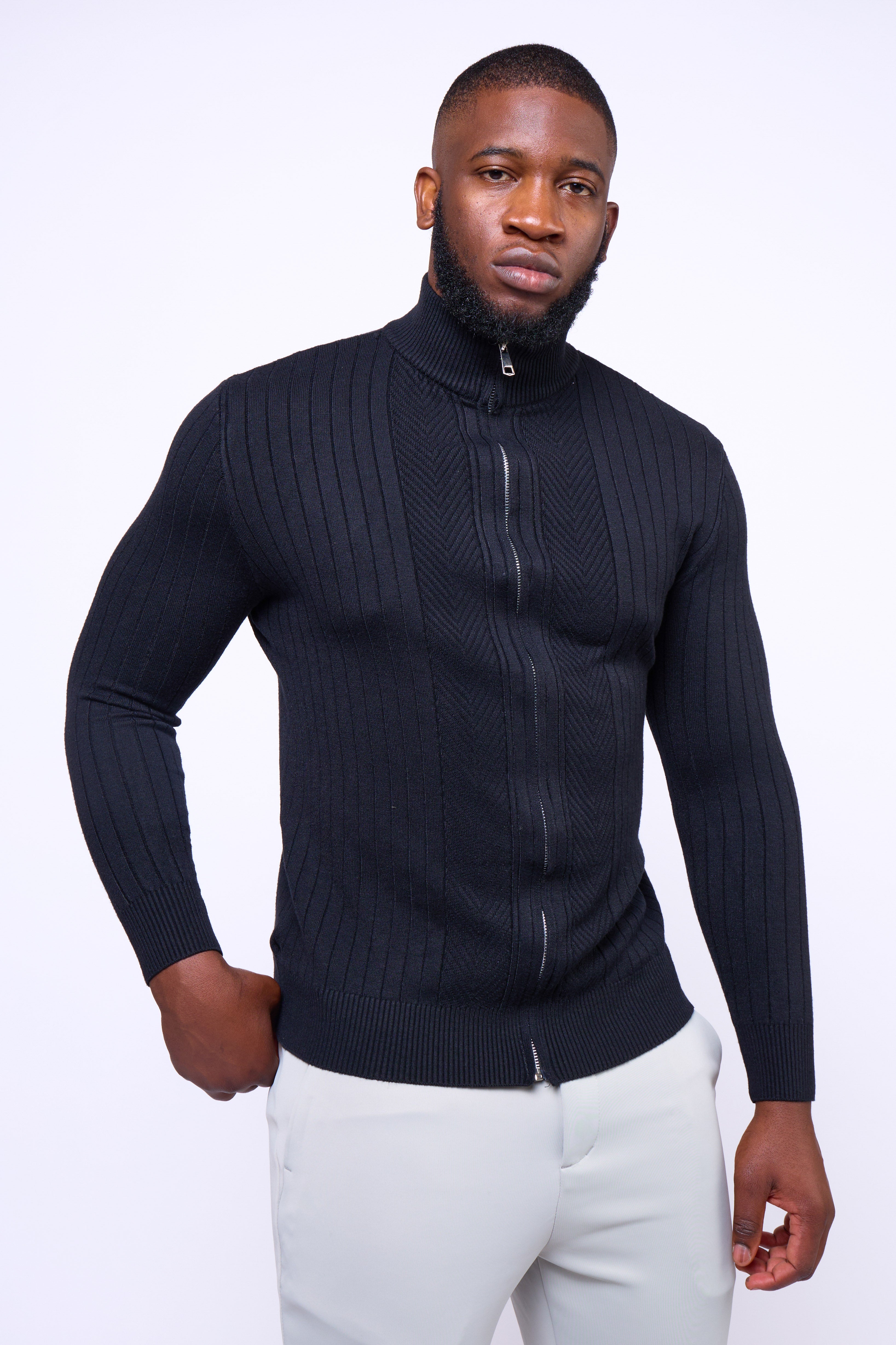 Featuring a full-length dual zipper and ribbed vertical texture, the Toni Sweater delivers versatility and confidence in every setting — from casual layering to evening refinement. Finished with a mock-neck collar for a modern touch, it’s a wardrobe essential that balances structure with style.