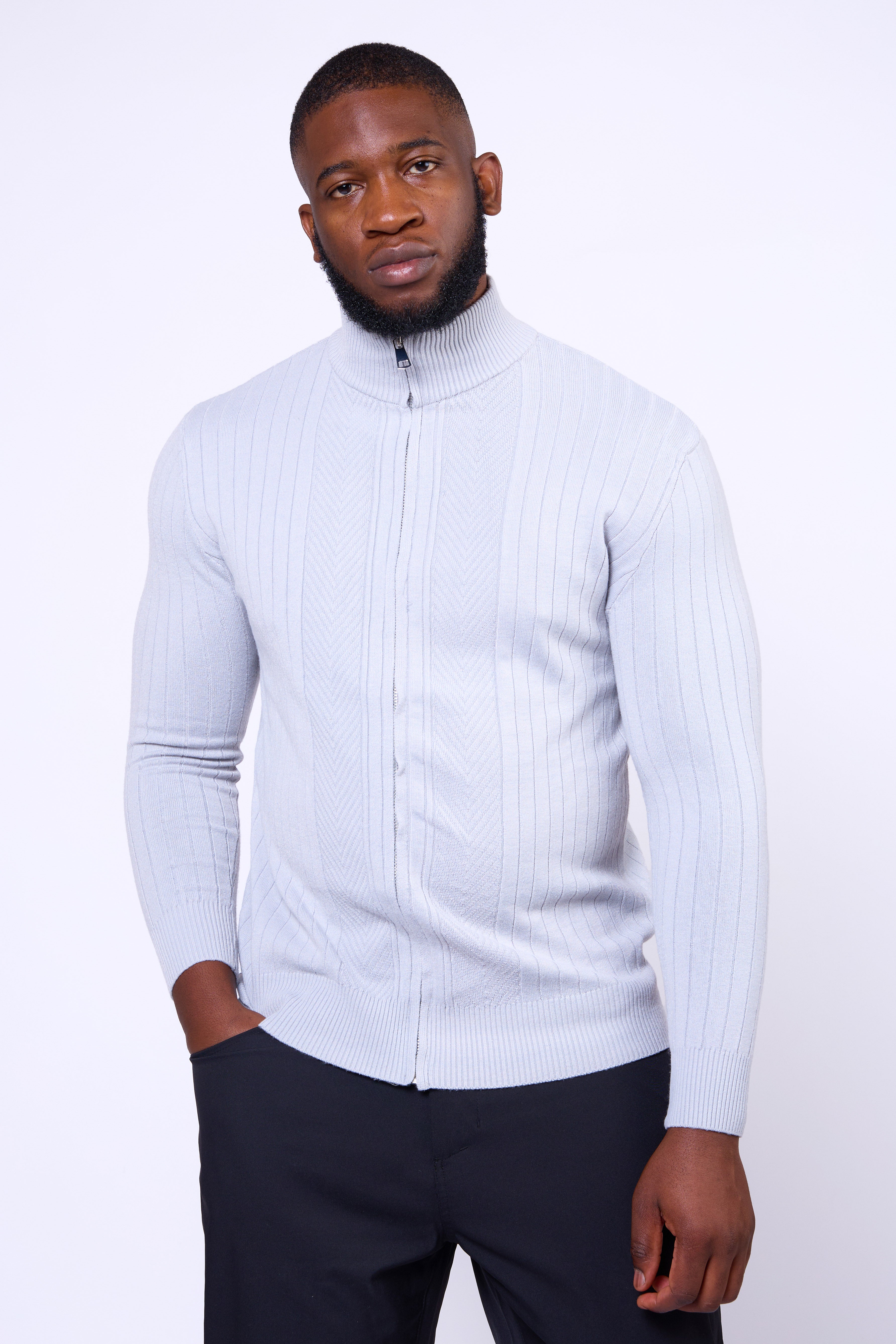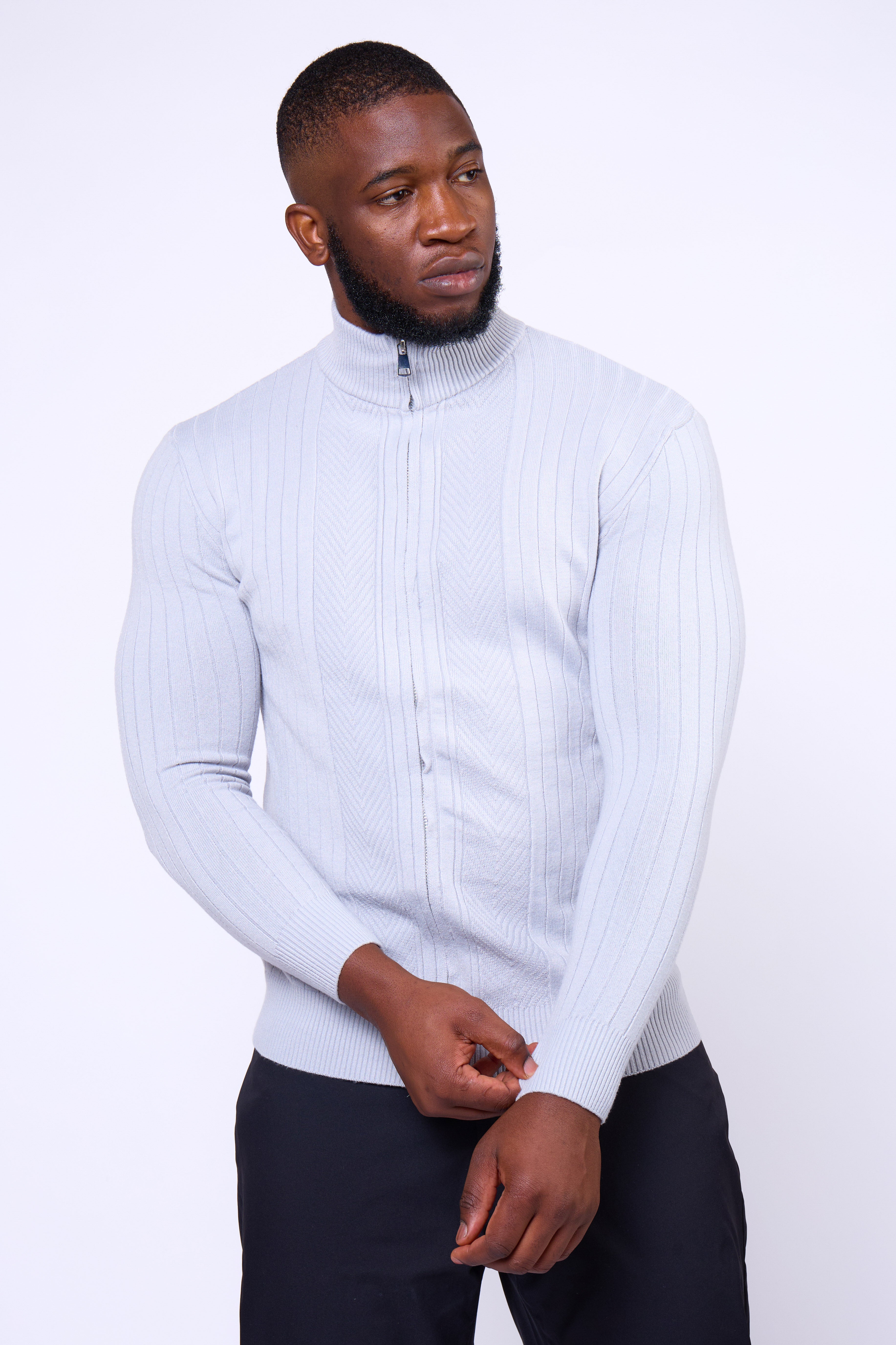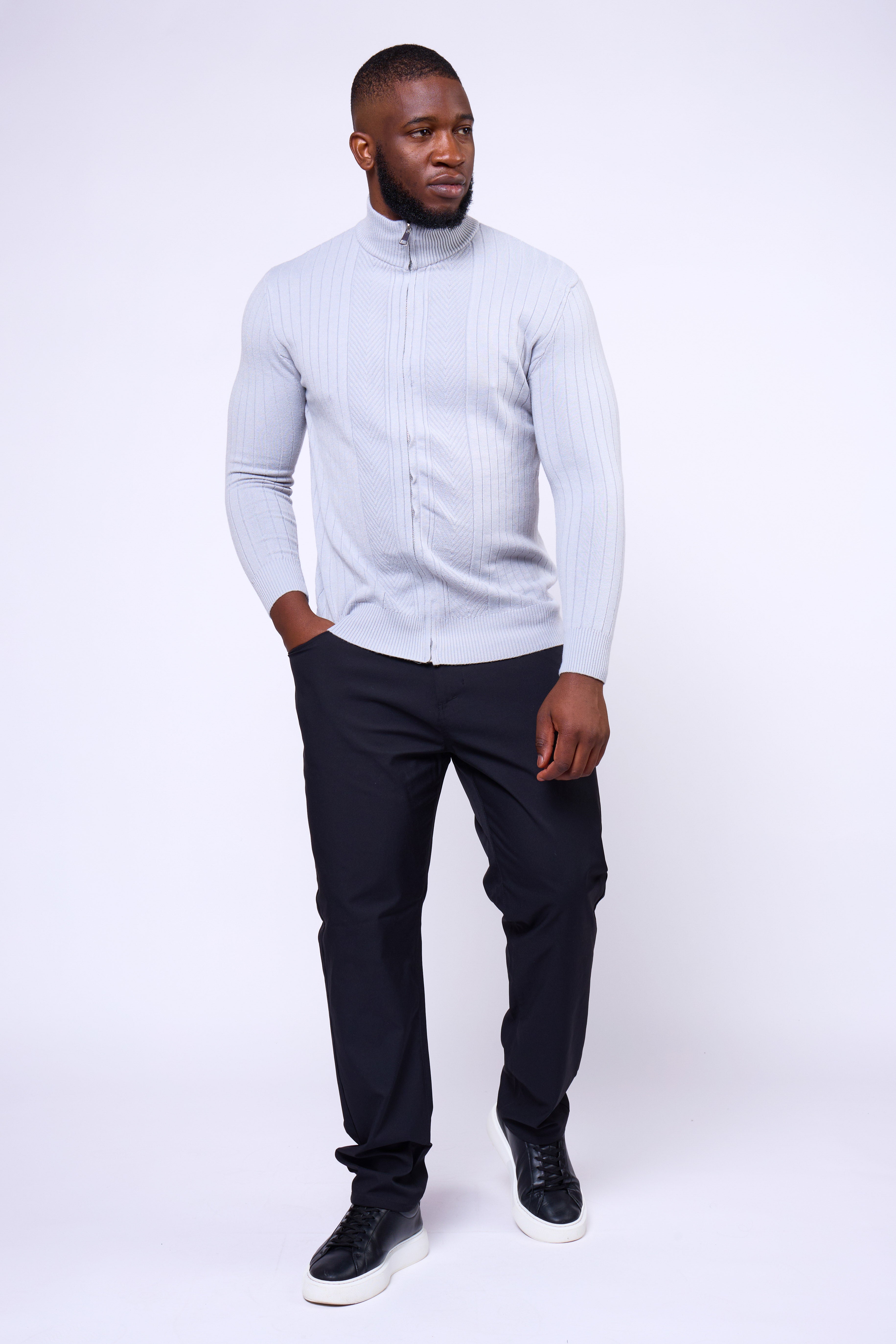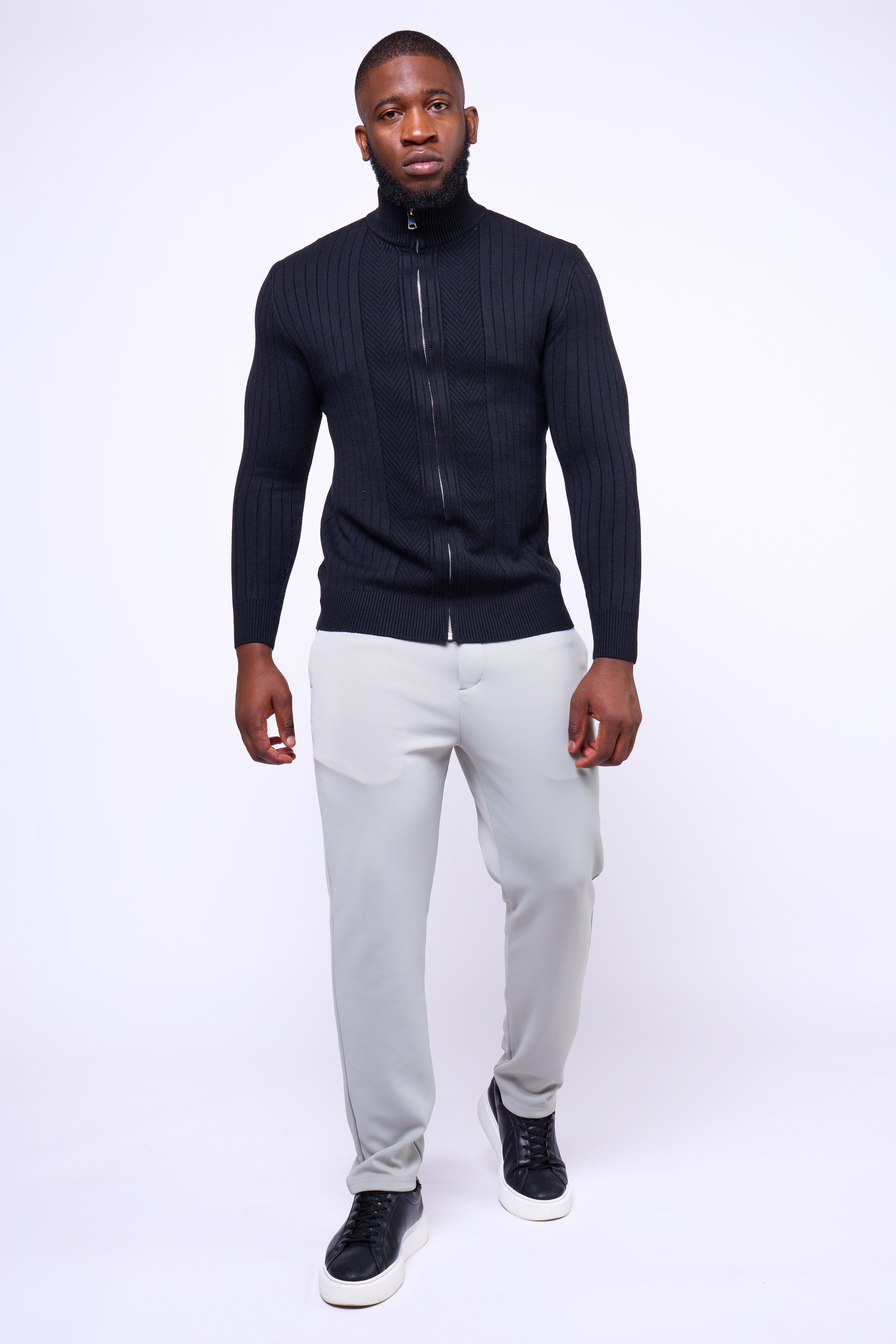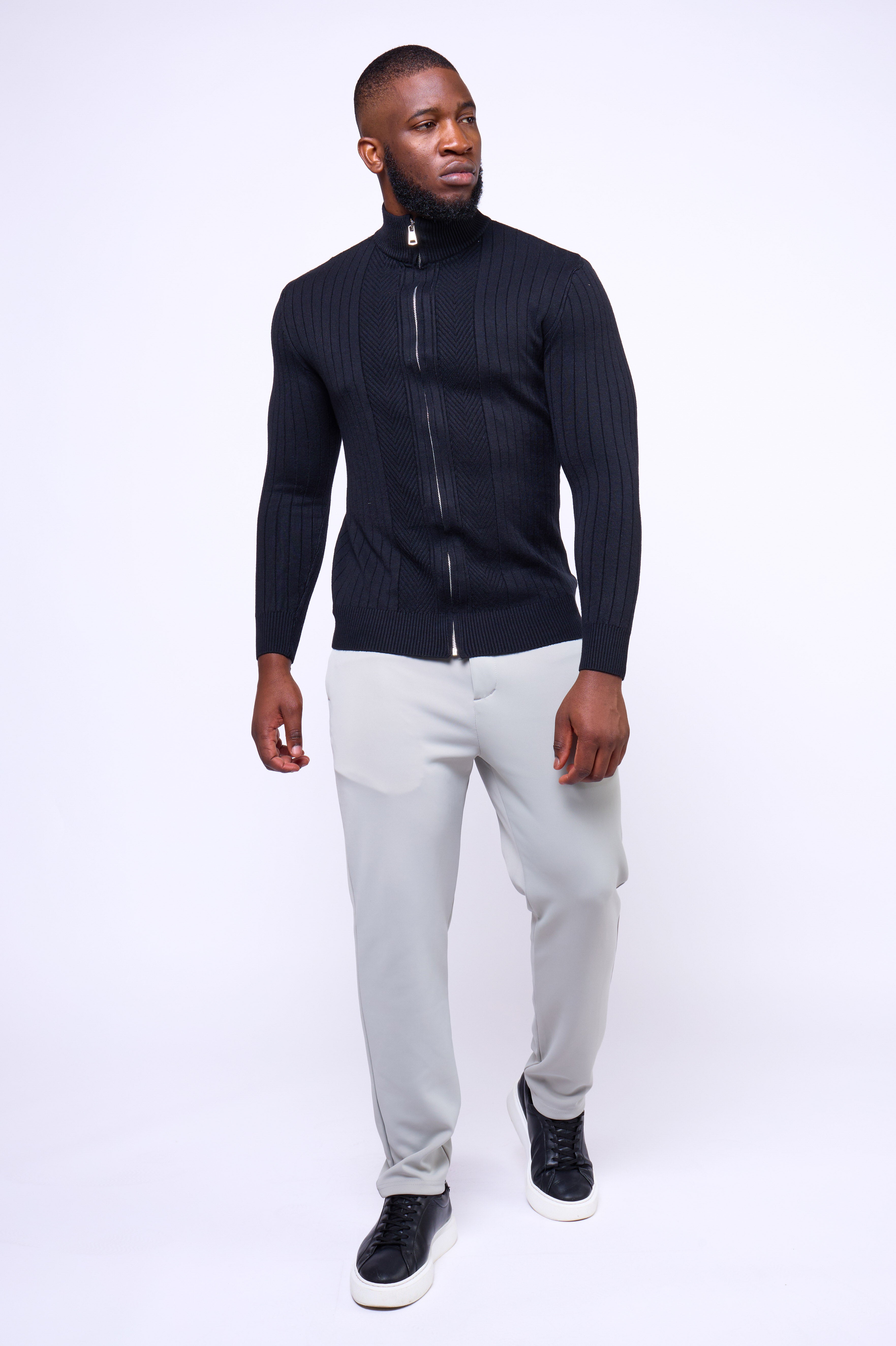 Featuring a full-length dual zipper and ribbed vertical texture, the Toni Sweater delivers versatility and confidence in every setting — from casual layering to evening refinement. Finished with a mock-neck collar for a modern touch, it’s a wardrobe essential that balances structure with style.
