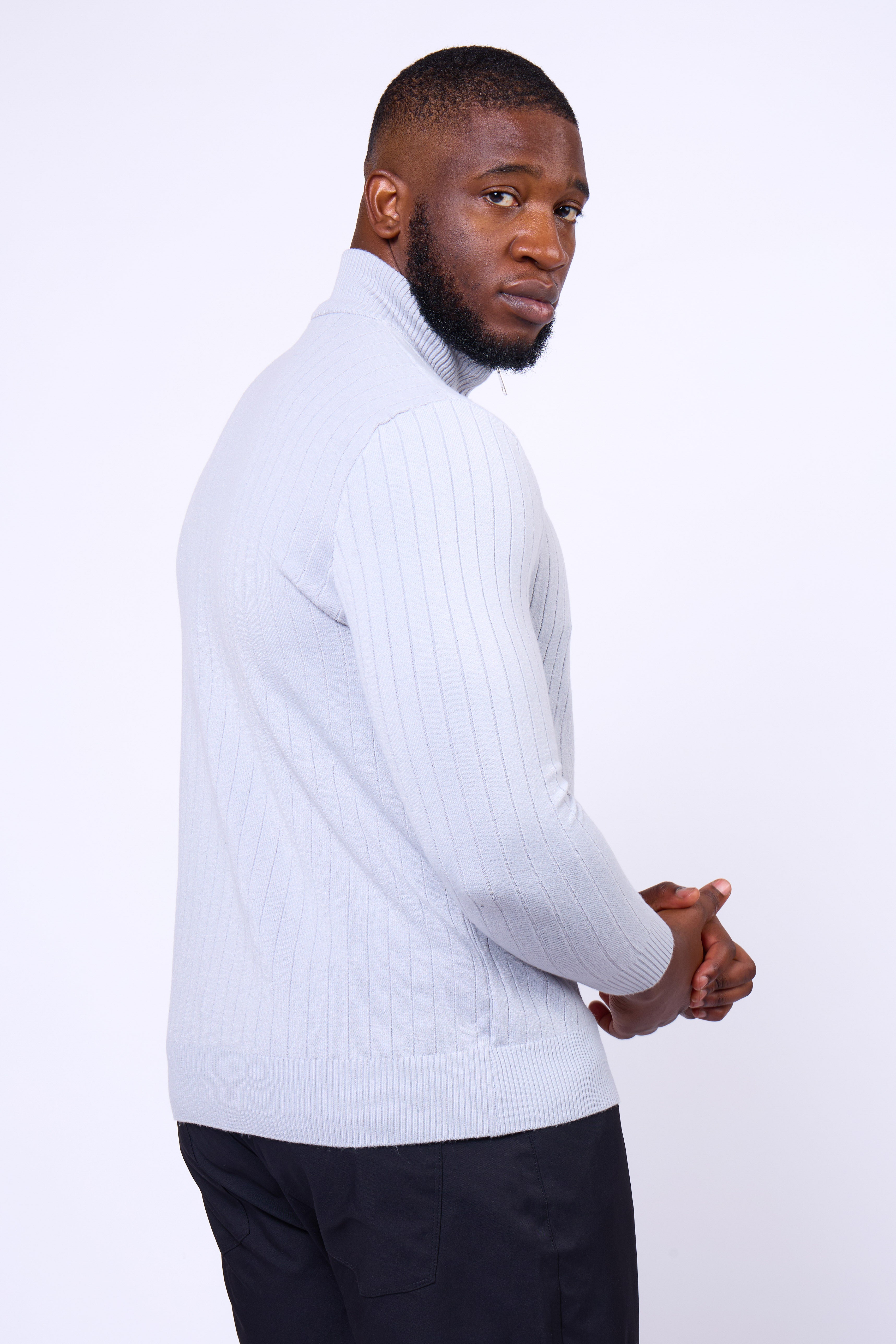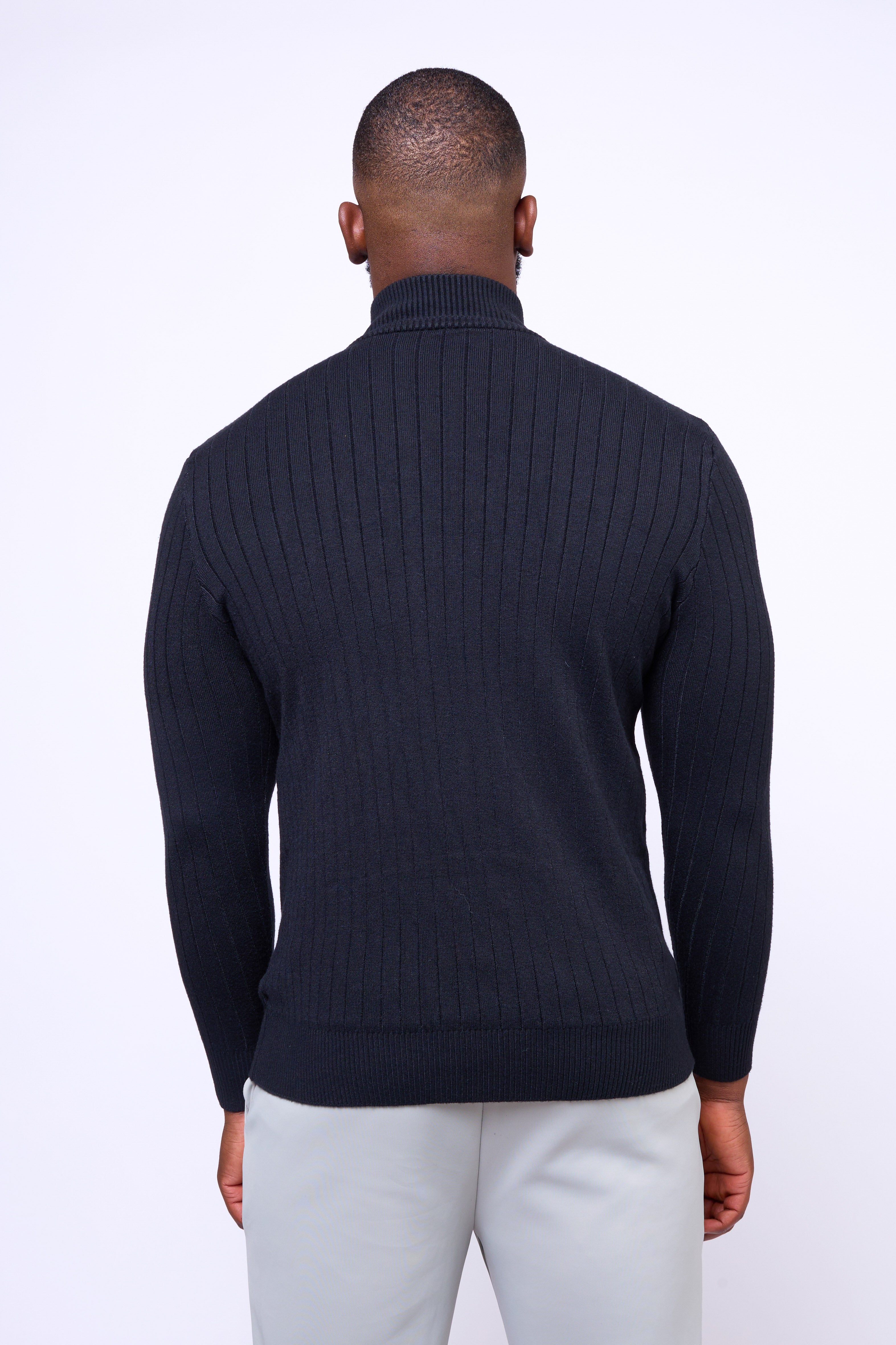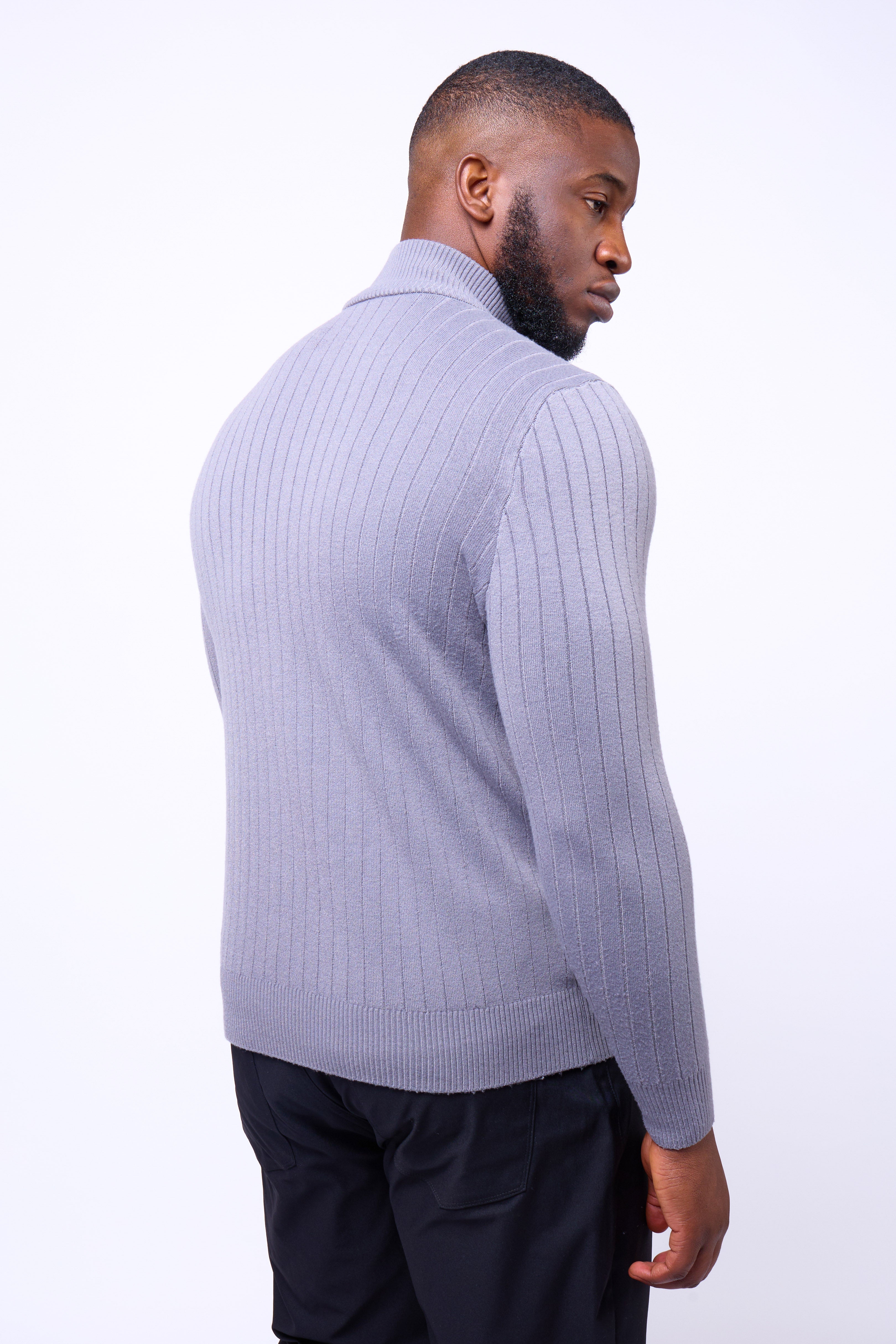 The Toni Sweater by NoirVain combines contemporary design with a tailored edge. Crafted from a premium ribbed knit fabric, this piece offers a clean, sculpted fit that defines the physique while maintaining all-day comfort.